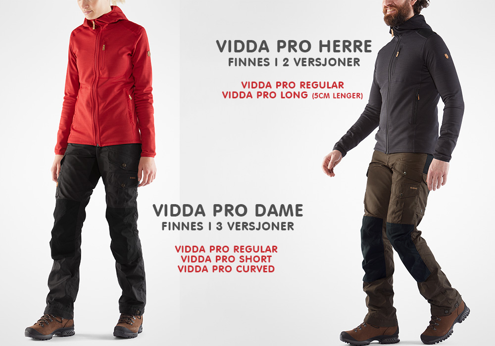 Fjellreven Vidda pro er en slitesterk turbukse for eventyr til fjells og til skogs. Den passer fint både på sommer og vinter. Vidda er fremstilt av det slitesterke og vannavvisende stoffet G-1000® med et dobbelt lag over sete og knær. Vidda buksene finnes til dame, herre og barn og kommer i forskjellige lengder og passformer. Fjällräven Vidda Pro har seks praktiske lommer, blant annet kartlomme og økselomme. Nederst på buksen er det alastisk stroppejustering med trykknapper, slik at buksen fint kan passe over forskjellige fottøy. På knærne er det en egen lomme med plass til knebeskyttere.