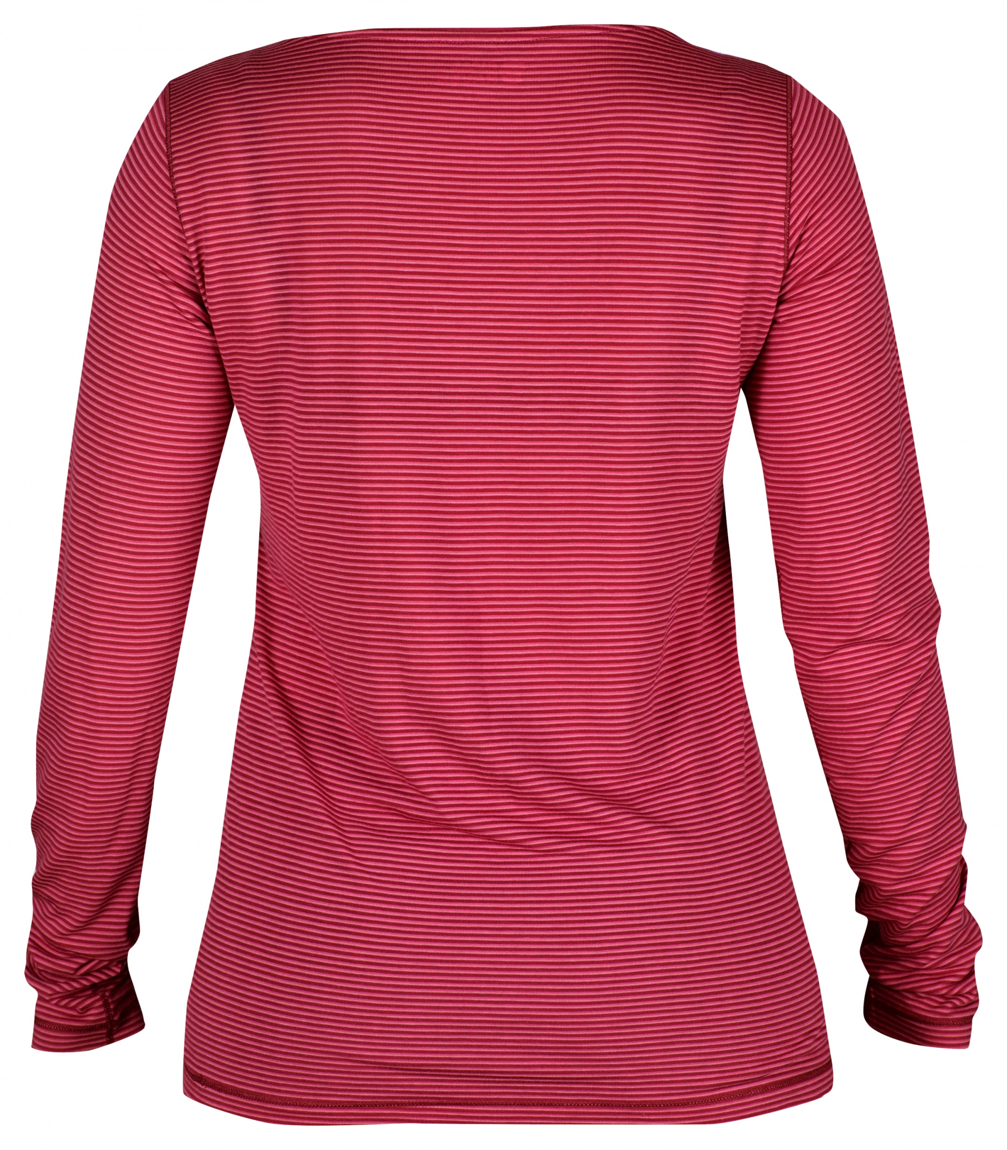 Langermet topp med god passform og V-hals. Like komfortabel på fotturer som på reiser i varme strøk. Fremstilt av et smidig funksjonsmateriale med lyocell og økologisk bomull som transporterer fuktighet og kjennes behagelig mot huden. Fint mønster med smale striper i avstemte nyanser. Flatlocksømmer som hindrer hudirritasjon.
