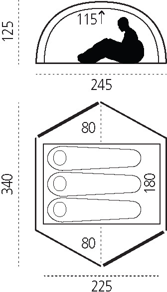 - Høy takhøyde og bratte innerteltvegger gir et komfortabelt og sosialt område.
