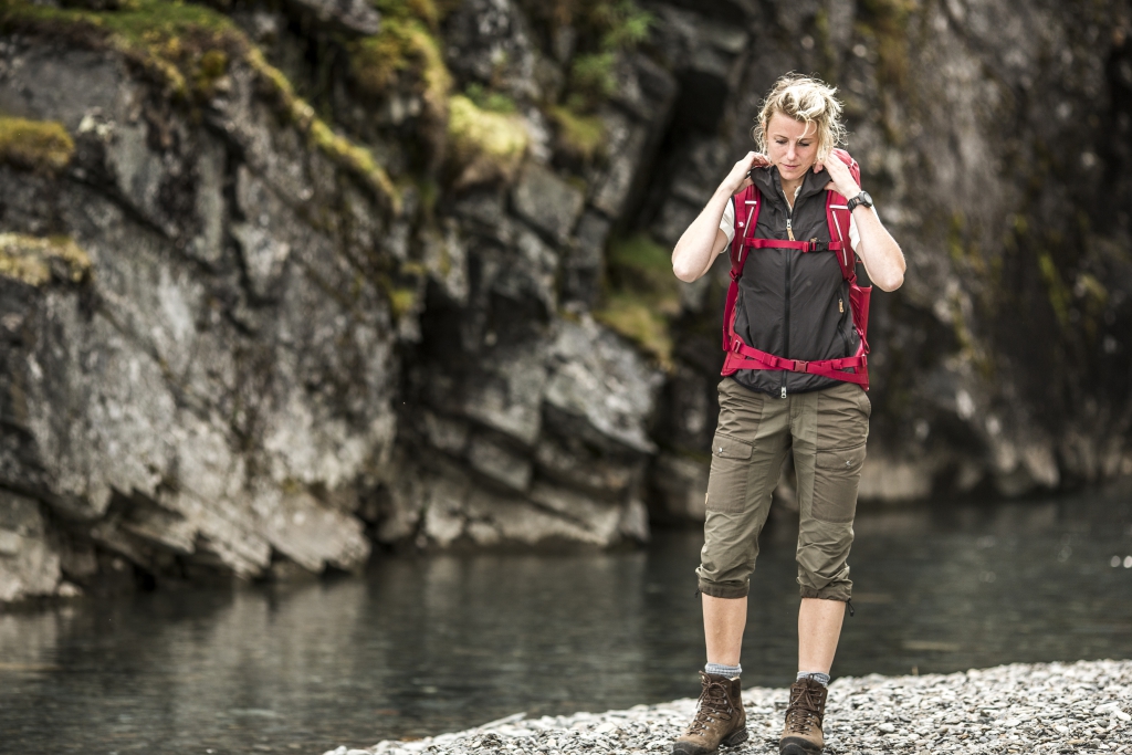 Trekvartlang turbukse i lett hurtigtørkende stoff til bruk på fotturer i varmt vær.