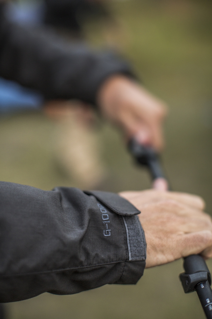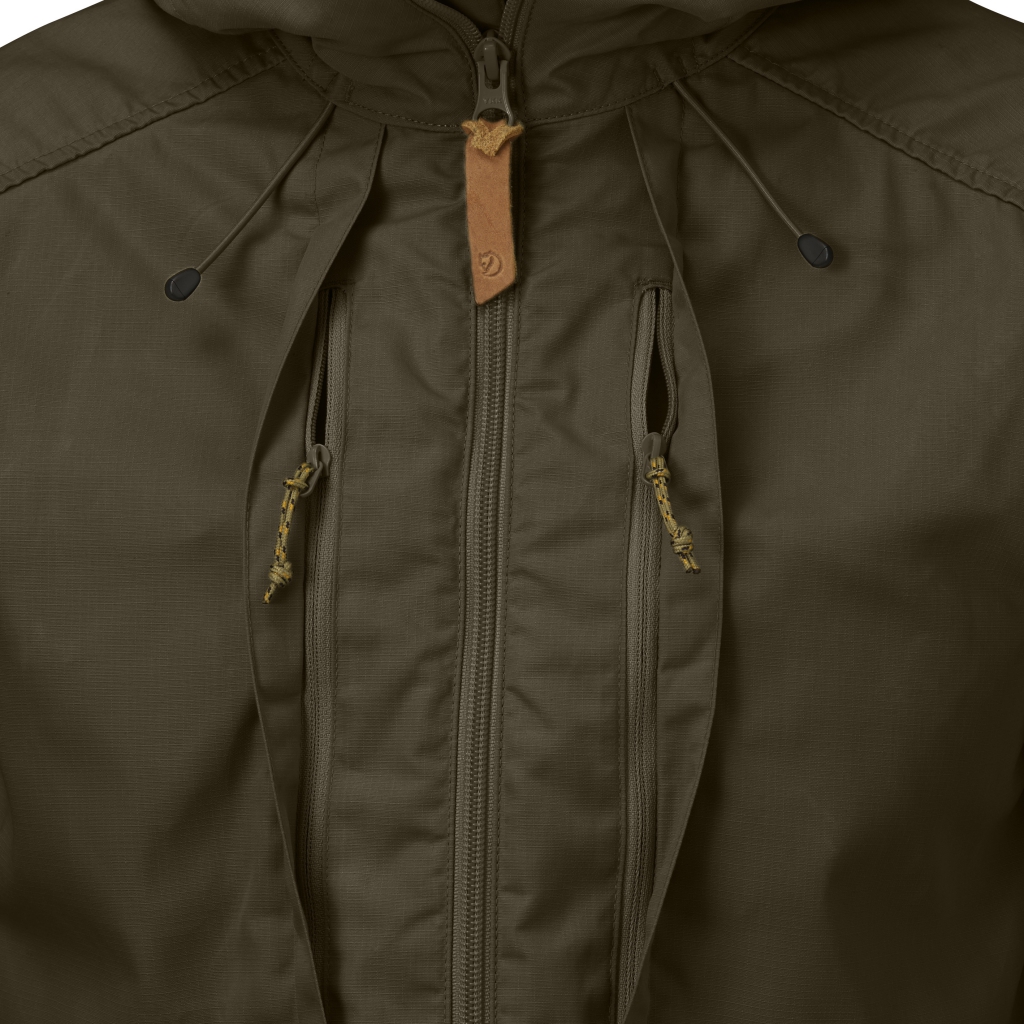Laget av slitesterkt elastisk stoff og G-1000 Lite. Elastisk stoff over rygg og mage gir bevegelsesfrihet mens G-1000 på brystet skuldrene hetten og ermene beskytter mot vind og regn.