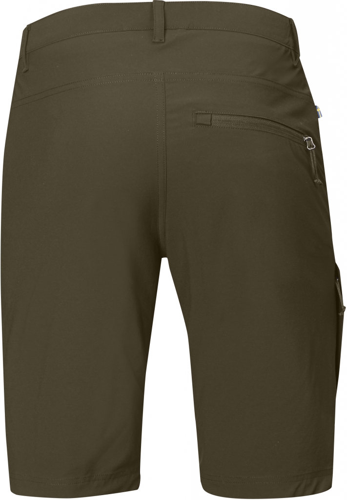 Lett og luftig turshorts i behagelig elastisk stoff som gir deg maksimal bevegelsesfrihet. Stoffet er godt ventilerende tørker fort og tar liten plass når det pakkes ned – praktisk på fotturer i sommerfjellet eller i varmere strøk. Benlomme med glidelås i høyre side med innvendig nettinglomme til mobiltelefon pluss to stikklommer og en baklomme. Normal passform med en normal midje som er litt høyere bak slik at shortsen sitter behagelig når du går med ryggsekk.