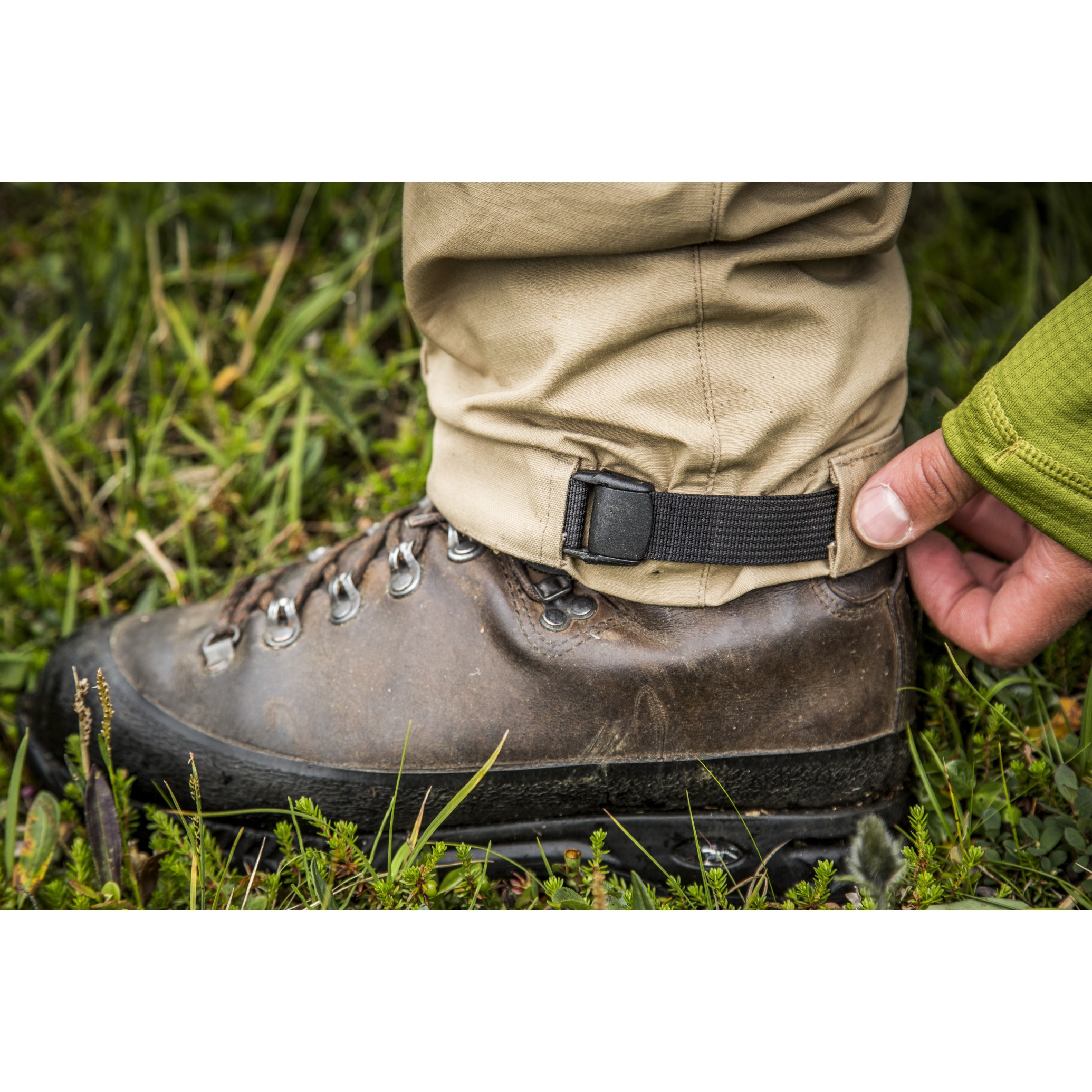 - Forsterkninger ved benavslutninger og på innsiden av nedre del av leggen for ekstra motstand mot slitasje fra fjellstøvler.