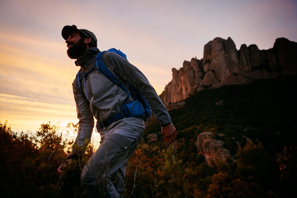 Lette fotturer og varmt vær. Beskytter mot sol, vind og lett yr uten å bli klam.