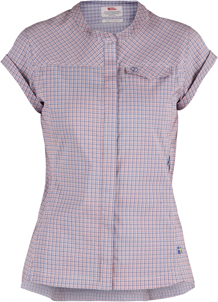 Lett og komfortabel skjorte med cap-ermer for gåturer og utendørsliv om sommeren og i varme klima. Laget av mykt polyester materiale med stretch som transporterer fuktighet, og som føles herlig og kjølig mot huden. Et attraktivt plagg med høy funksjonalitet ute i terrenget, og den klassiske stilen gjør at den passer for hverdagsbruk også.Passformen er kroppsnær med en liten stående krave og gjemte trykknapper i front. Det finnes en brystlomme med klaffer og en sikkerhetslomme med glidelås i sidesømmen.