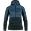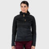 Lett praktisk hettejakke i to forskjellige typer fleece som varmer der du trenger det mest og holder vekten og pakkevolumet nede. Hetten, skuldrene og brystet er sydd i glattstrikket polyesterfleece (delvis gjenvunnet) med myk børstet innside mens nedre del av bolen og ermene er i en lettere fleece med gitterstruktur og førsteklasses ventilasjon. Perfekt som hurtigtørkende og fuktighetstransporterende mellomlag på dagsturer eller kjølige sommerkvelder. Feminin, god passform med lun hette som har åpning for hestehale. Enveis glidelås foran. En brystlomme og to stikklommer, alle med glidelås.