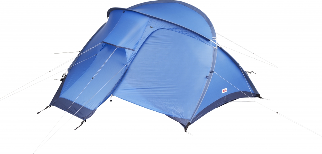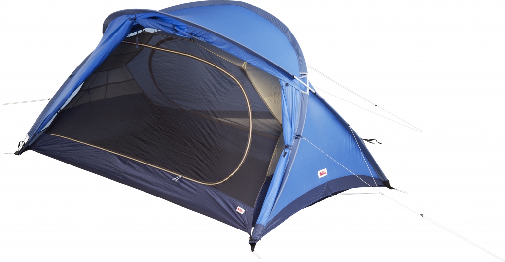 Selvstående 2-persons telt med førsteklasses ventilasjon, optimalisert for bruk i de tre varmeste årstidene. Forteltene kan rulles helt opp på begge sider slik at du kan nyte utsikten fra innerteltet, samtidig som at insektene holdes ute. Ytterteltet kan rulles opp i kortendene, og sammen med de høyt plasserte ventilene og innerteltet i nettingmateriale gjør dette teltet utrolig godt ventilert og perfekt for tropiske opplevelser. I ustabilt, men varmt vær kan dørene festes i halvåpen stilling slik at innerteltet er beskyttet mot regn. Innerteltet og ytterteltet henger sammen og holdes oppe av to teltstenger som krysser hverandre to ganger. Det gjør innerteltet selvstående, mens forteltene støttes ved hjelp av stormliner og teltplugger. Seks stormliner i Dyneema forankrer teltet i bakken og gir det god stabilitet. To åpninger og to fortelt gjør det enkelt å organisere din side av teltet, og gjør det mulig å bruke inngangen på lesiden når det blåser kraftig. God høyde gjør teltlivet behagelig. Inne i innerteltet er det en klessnor og seks oppbevaringslommer til flasker, lommelykter, klær o.l. Festepunkt for utstyrsloft (tilbehør) i innerteltet. Ytterteltet er sydd i Fjällrävens nye tekniske TripleRip-polyamid, og en innovativ konstruksjon som kombinerer to ulike materialvekter – 20 denier øverst og 40 denier nederst der slitasjen er mest intens – gir førsteklasses styrke til tross for teltets lave vekt. Som alle Fjällrävens telt er Abisko View 2 produsert helt uten PVC-plast og giftige flammehemmere og impregneringen er fluorkarbonfri.