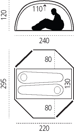 Materiale teltinnside: 15D Ripstop DWR 100 % polyamid