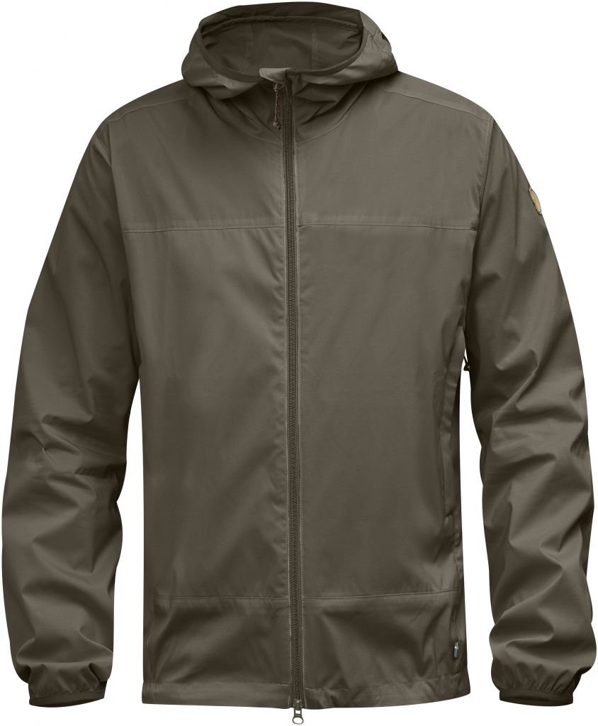 Den er lett og kan pakkes ned i sin egen lomme og den har en velsittende hette som beskytter mot sur vind.