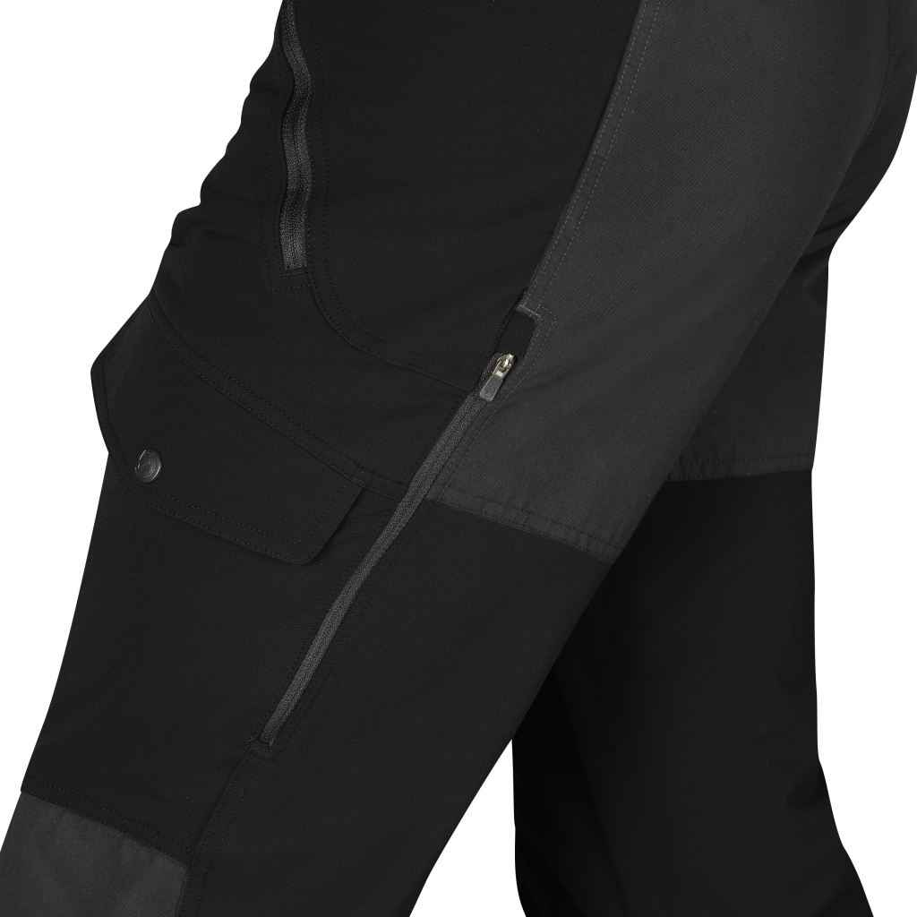 Älv fjellbukse fra Fjellreven er en slitesterk stretchbukse for fot- og fjellturer i de kalde delen av året. Laget av mykt fireveisstretch med forsterkninger på ryggen knær og ankler. elv fjellbukse er i G-1000 som kan impregneres for ekstra beskyttelse mot vind og regn. Ventilasjonsspalter nedover låret sørger for utlufting av overflødig varme . To lommer med glidelås én for kart og en med lokk og trykknapp. Mansjetter med justering og skjulte skiskokroker .