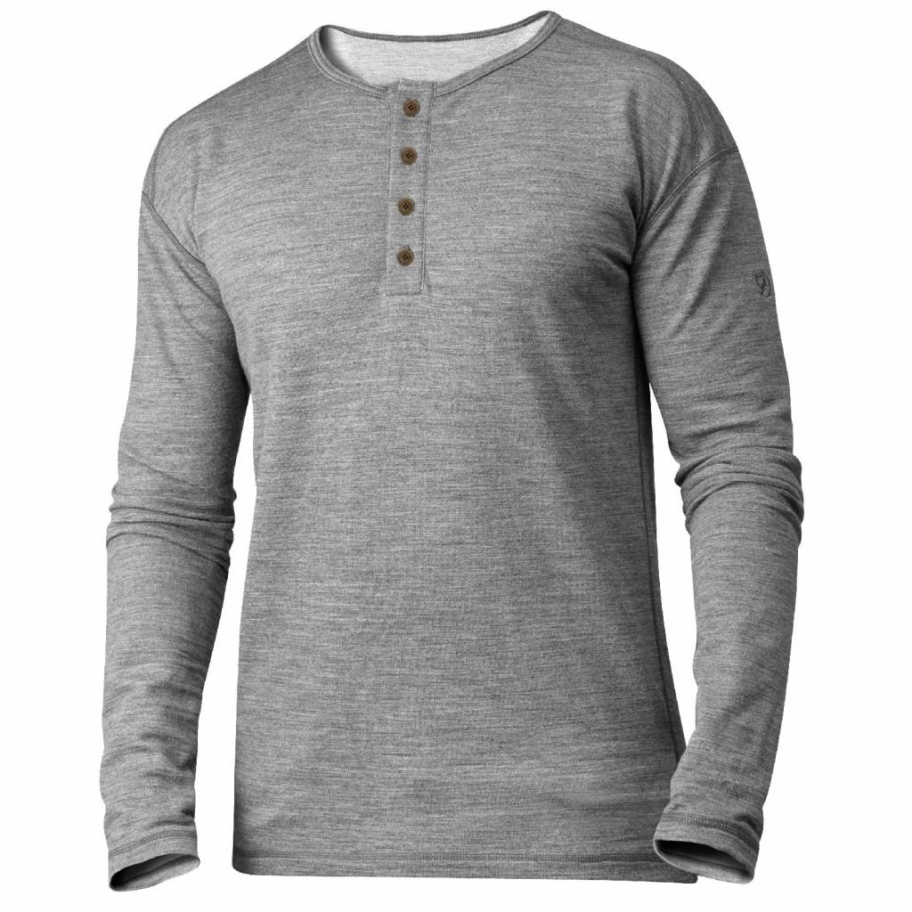 Myk og varm undertrøye i en stil som er inspirert av farfars fine undertrøye. Sydd i merinoull med frottéstrikket glatt innside. Perfekt som innerste lag nærmest kroppen. Materialet leder bort fukt og varmer godt også når det er vått. Merinoull har dessuten den fordelen at det ikke klør og den har naturlige antibakterielle egenskaper som gjør at plagget ikke trenger å vaskes så ofte. Rund halsringing med knappestolpe foran. Flatlock-sømmer motvirker gnaging.