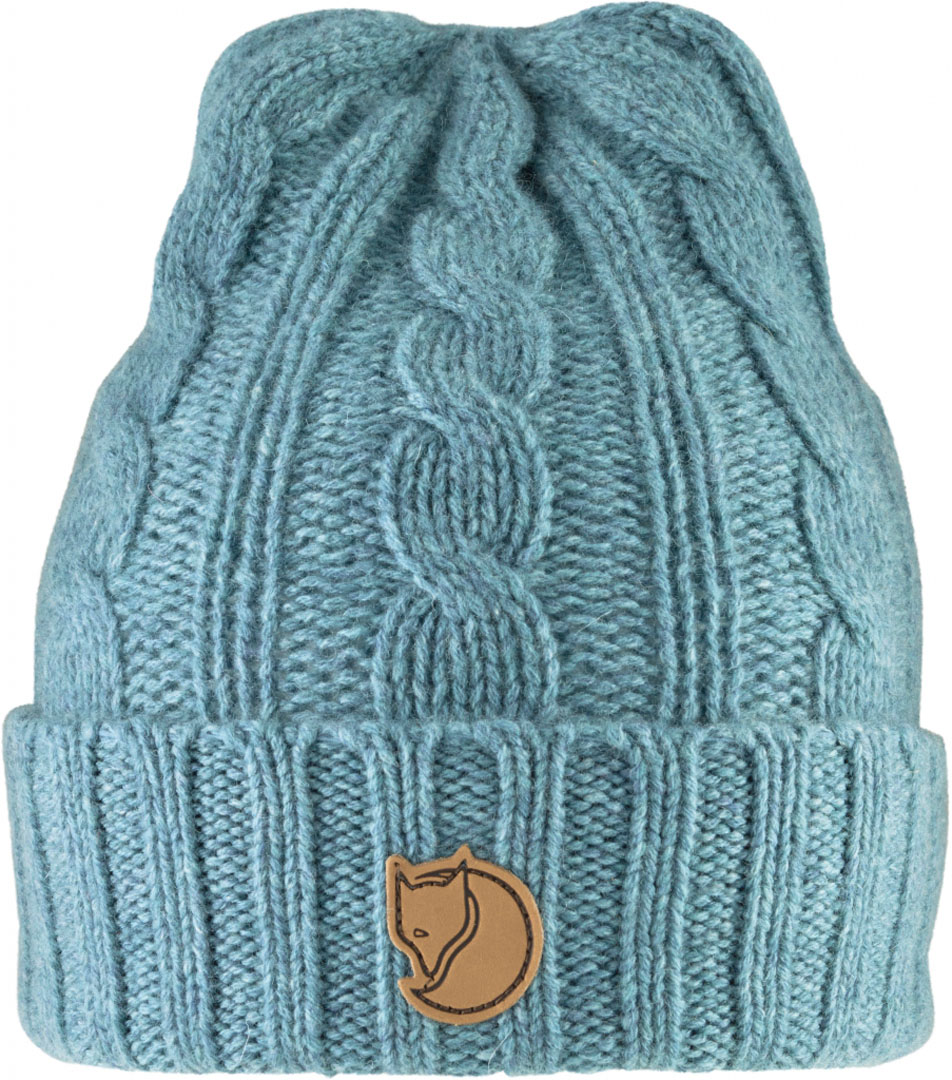 Strikket lue i en myk og varm ullblanding. Dekorativt flettemønster, og en bred ribbestrikket kant med logo av lær i front. Bred ribbestrikket kant.
