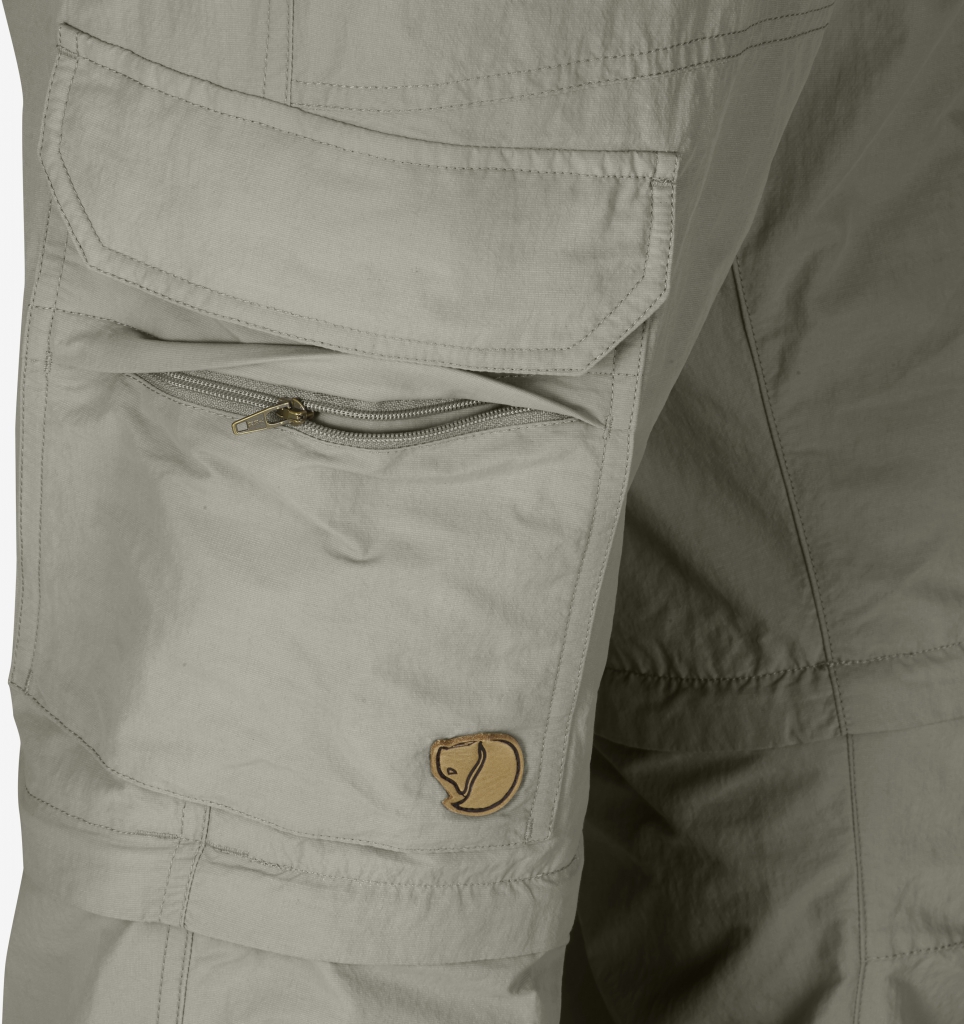 Lett, behagelig bukse med avtakbare ben, normal midje og innebygget UV-beskyttelse. Laget av hurtigtørkende MT-stoff som transporterer fuktighet og gir god ventilasjon, og som føles behagelig mot huden selv på virkelig varme dager. Dessuten gjør glidelåsene ved knærne at du raskt kan gjøre buksen om til en shorts. Mange praktiske lommer, for eksempel en benlomme med klaff og en mindre glidelåslomme øverst på høyre ben pluss en mindre, vertikal lomme med glidelås på venstre ben. I tillegg er det en utvendig sikkerhetslomme skjult i sømmen på venstre hofte. Formsydde ben og benavslutninger som ikke er faldet opp, og som lett kan tilpasses flere benlengder. Innebygget UV-beskyttelse, UPF 50