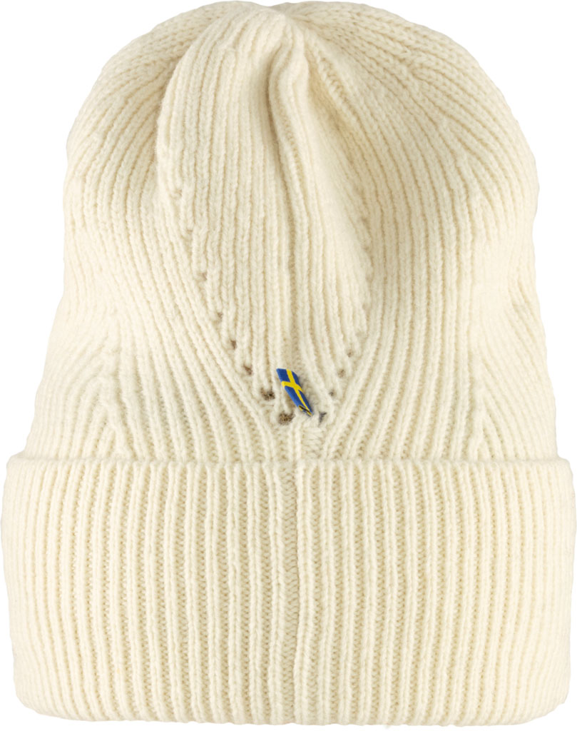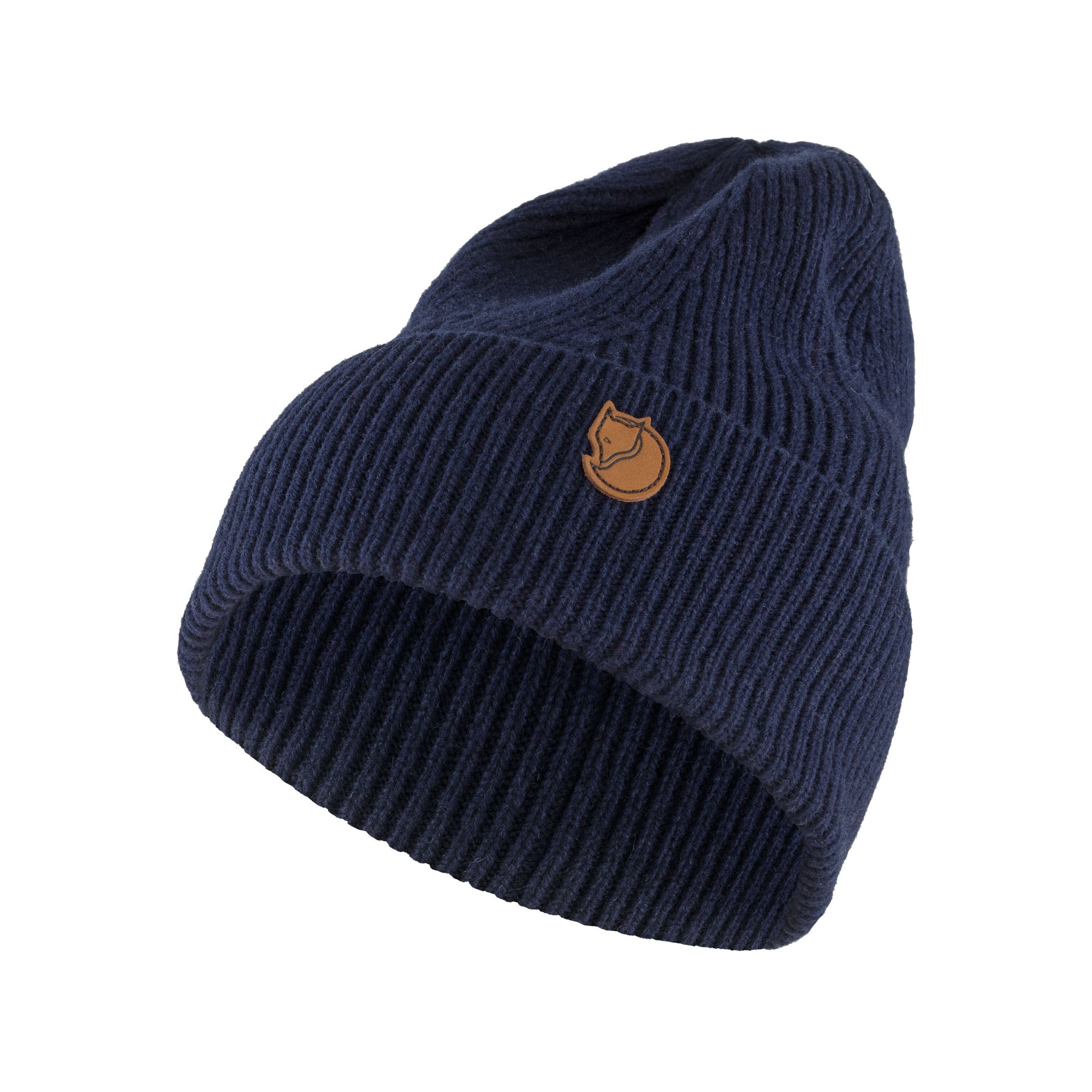Strikkelue i myk ull til friluftsliv i hverdagen når det er kaldt ute. Ribbestrikket i et fint, hullmønster med bred brettekant. Fjällrävens logo i lær på siden. Ullen er etisk produsert og sporbar.