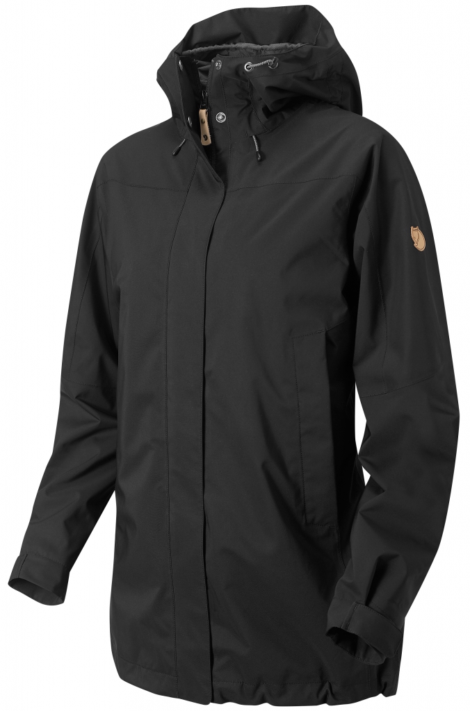 Tolags allværsjakke i Eco-Shell med gjenvunnet og resirkulerbar polyester et perfekt hverdagsplagg som også fungerer på turer i skog og mark der den litt lengre skjæringen varmer og beskytter mot fukt et stykke ned på lårene.