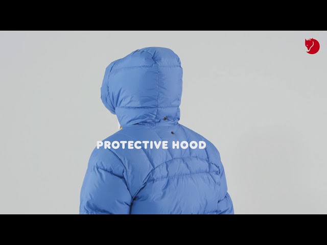 Lang og velisolerende dunjakke for virkelig kaldt vinterklima. En elsket Fjällräven-klassiker fra 1974, her med et oppdatert snitt for menn. Varm hette og generøse lommer med ekstra åpninger som lar deg putte hendene inn i fra sidene. Varm hette og generøse lommer med ekstra åpninger som lar deg putte hendene inn i fra sidene. Polstret med høykvalitets dun som er produsert på etisk vis. God balanse i plassering av kanaler fylt med dun gir et plagg uten varmetap. Skuldrene er forsterket med syntetisk polstring for å motstå fuktighet og trykk.
