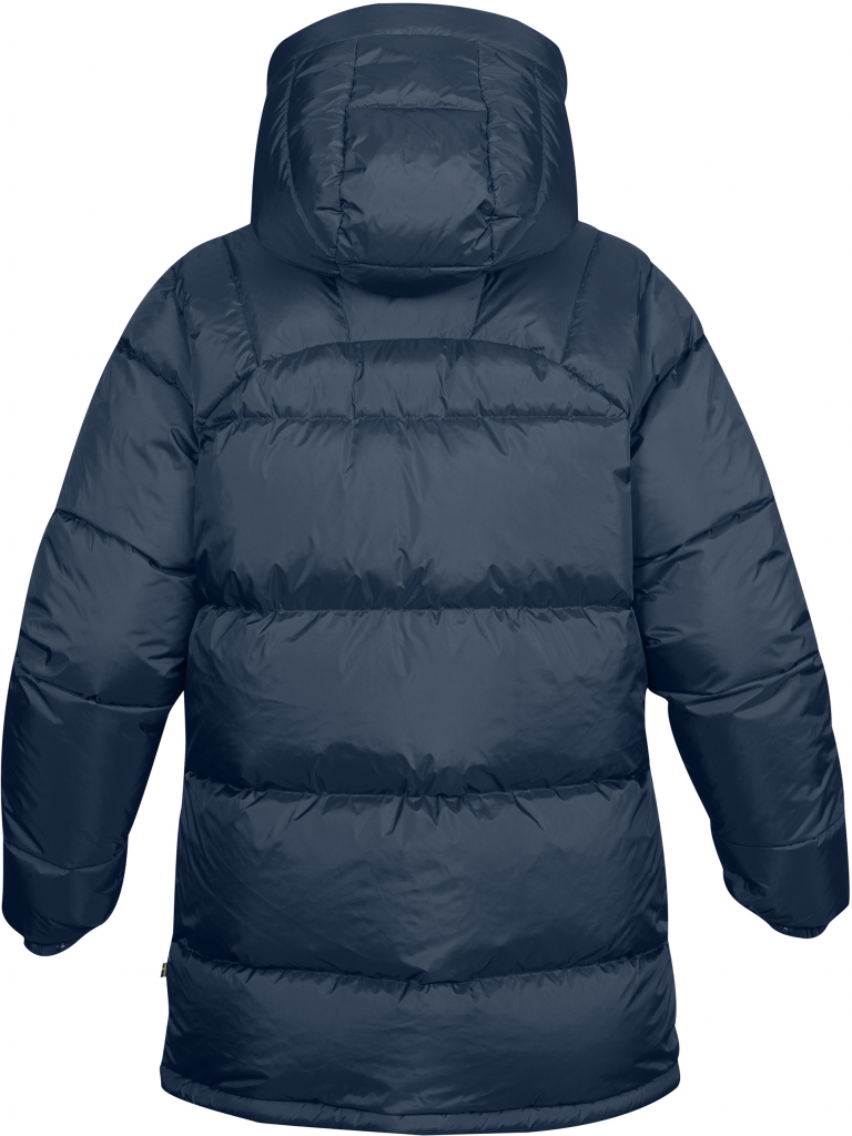 Lang og godt isolert dunjakke for virkelig kalde vintre. En høyt elsket Fjällräven-klassiker fra 1974, her med et oppdatert snitt for kvinner. Varm hette og generøse lommer med ekstra åpninger som lar deg putte hendene inn i fra sidene. Polstret med høykvalitets dun som er produsert på etisk vis. God balanse i plassering av kanaler fylt med dun gir et plagg uten varmetap. Skuldrene er forsterket med syntetisk polstring for å motstå fuktighet og trykk.