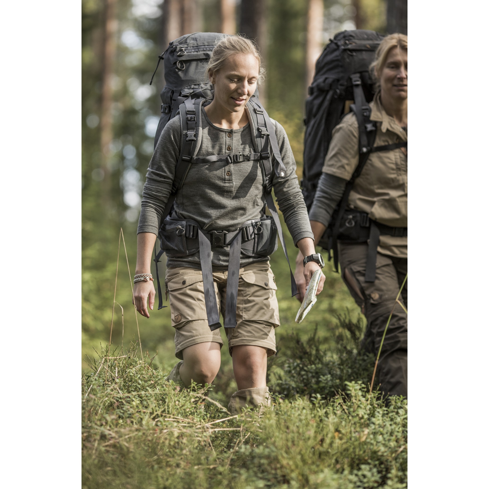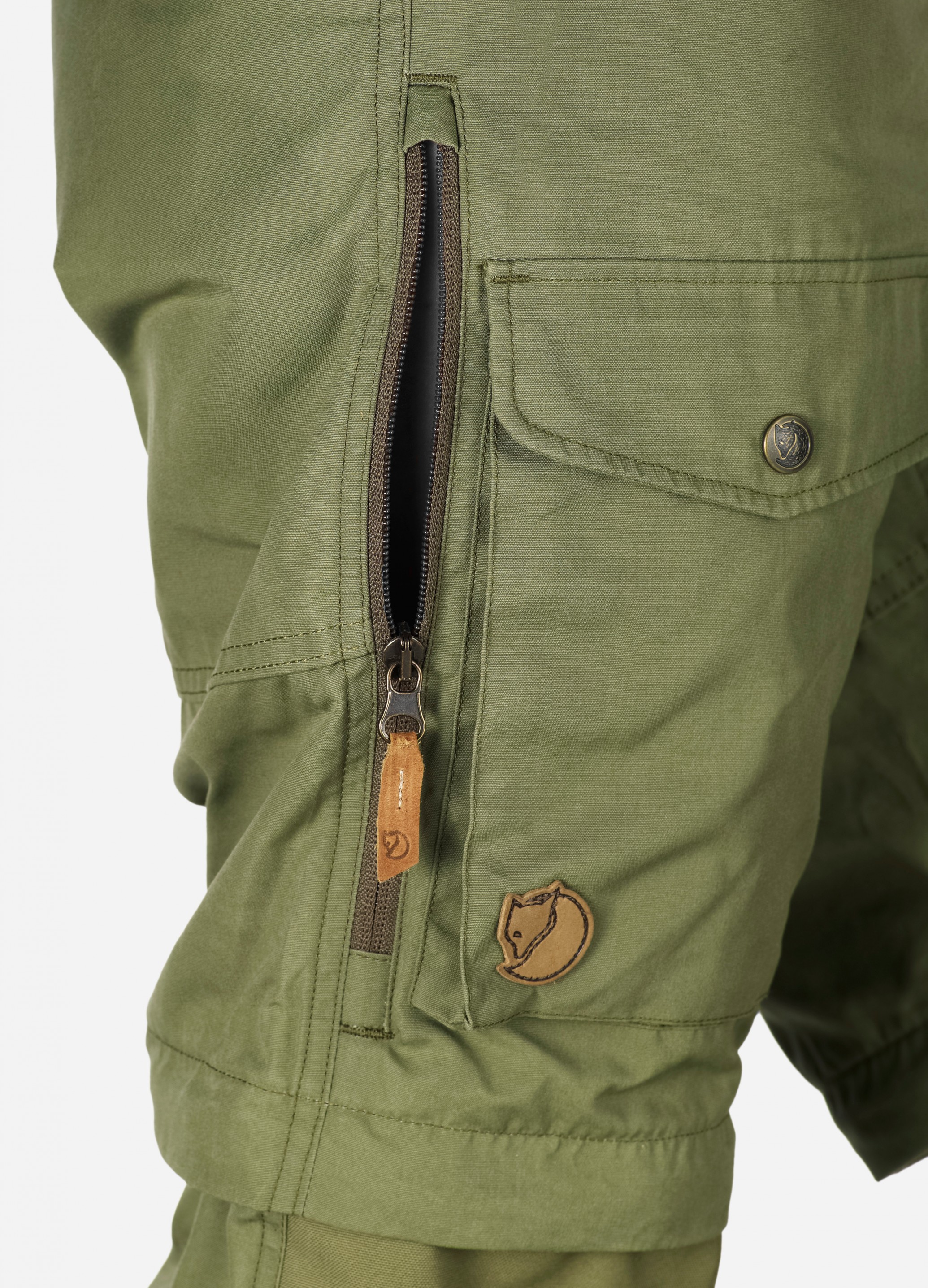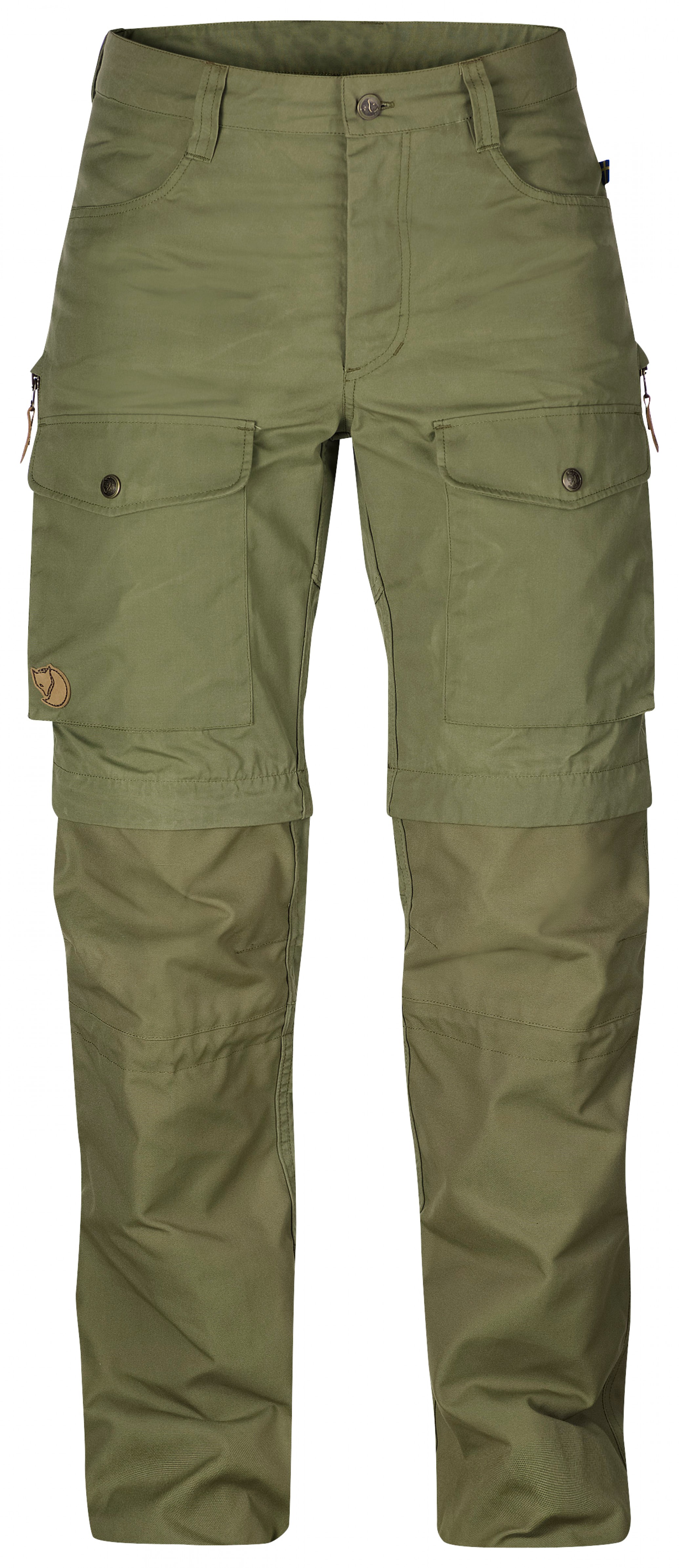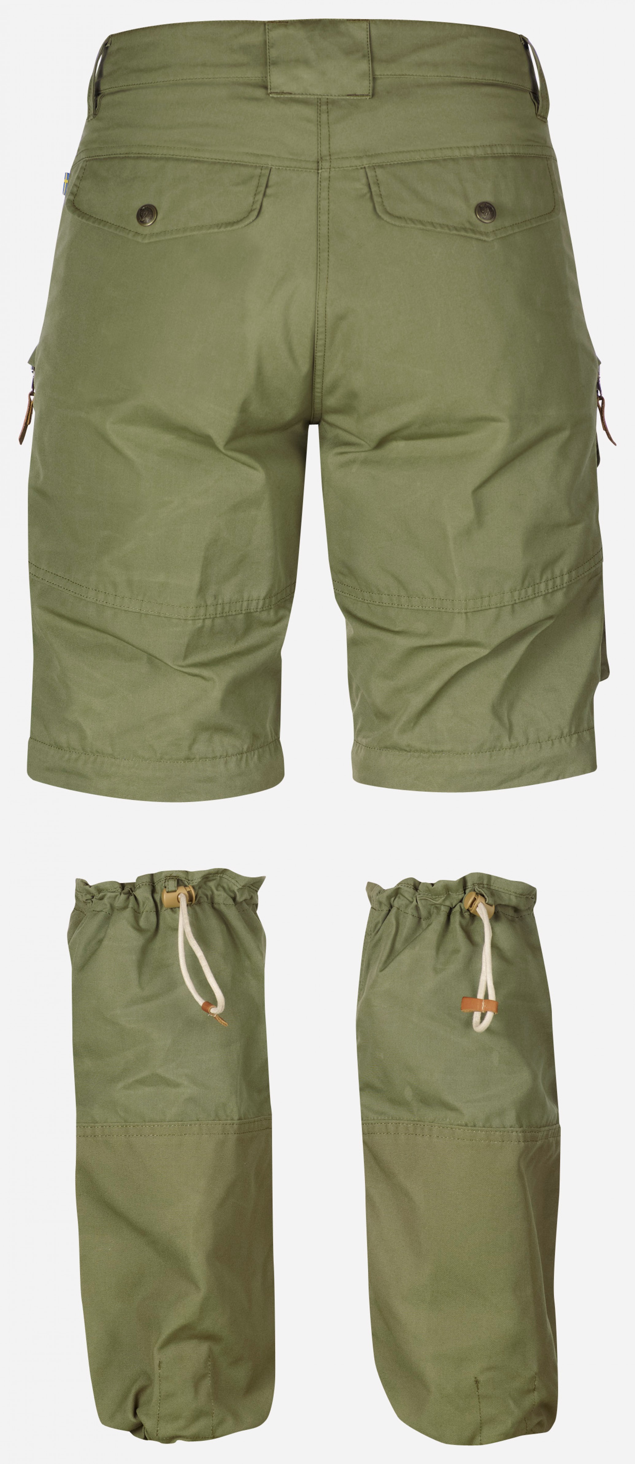 I varmt vær kan den nedre delen av benet tas av slik at buksen kan brukes som shorts akkurat som en vanlig bukse med avtakbare ben.