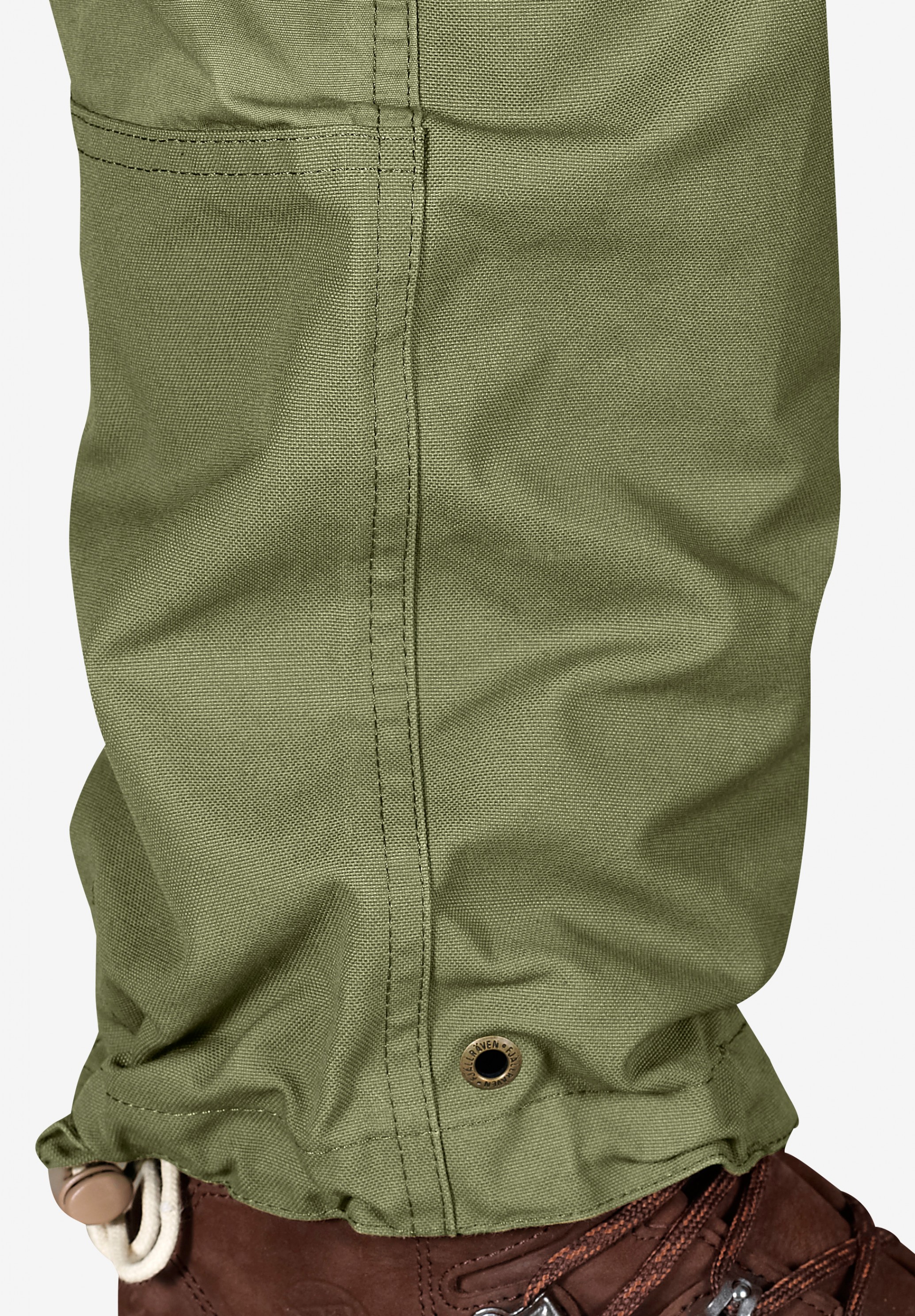 I tillegg til den skjulte støvelkroken er benavslutningene utstyrt med snørehull der lisser eller metallringer kan festes – enda en måte å feste buksebenet på og hindre kratt eller snø fra å trenge inn i støvlene.