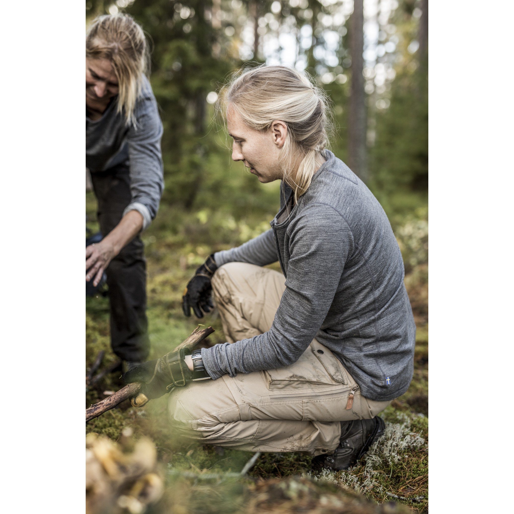 Buksen er laget av vind- og vanntett G-1000 Eco i resirkulert polyester og organisk bomull med et dobbelt lag av stoff over baken og ekstra slitesterkt G-1000 HeavyDuty på knærne og benavslutningene.