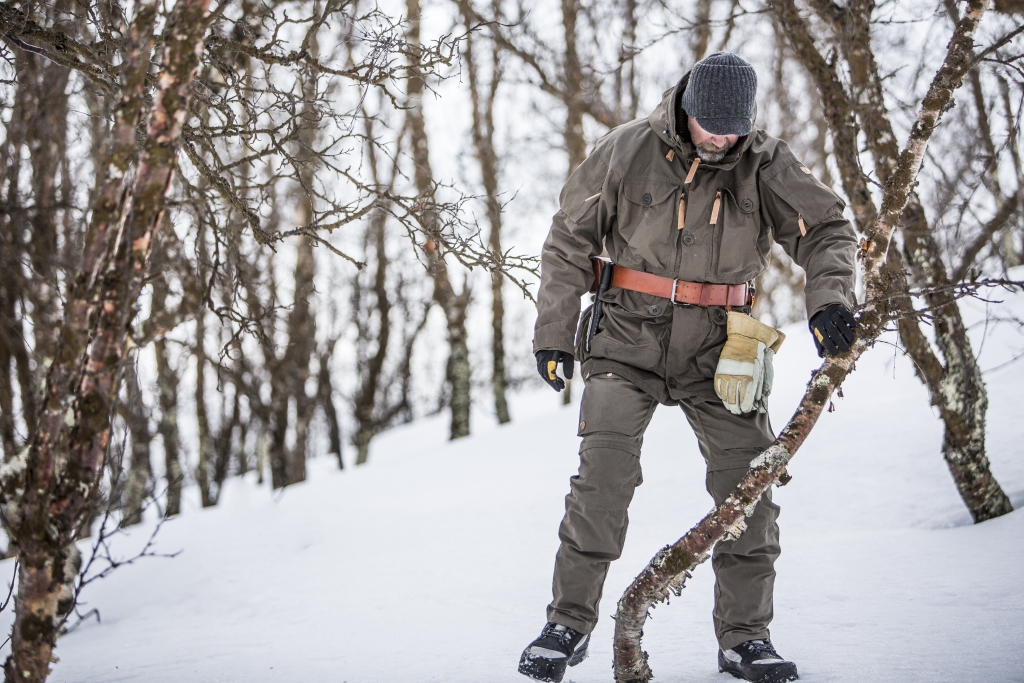 Gaiter-buksen er sydd i vind- og vannavvisende G-1000 Eco i gjenvunnet polyester og økologisk bomull med ekstra kraftig G-1000 HeavyDuty over baken på lommene og nederst i gamasjedelen.