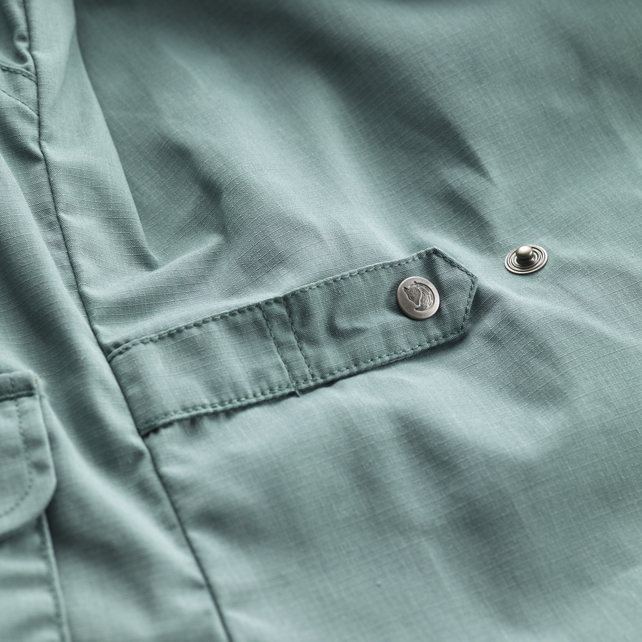 Lett «skjorte-jakke» i klassisk Fjällräven stil. Laget av lett og sterk G-1000 Lite Eco som er motstandsdyktig mot vind og regn mens den likevel transporterer fuktighet. Et slitesterkt praktisk plagg som er like passende når du sykler til jobb som den er for turer i skogen.