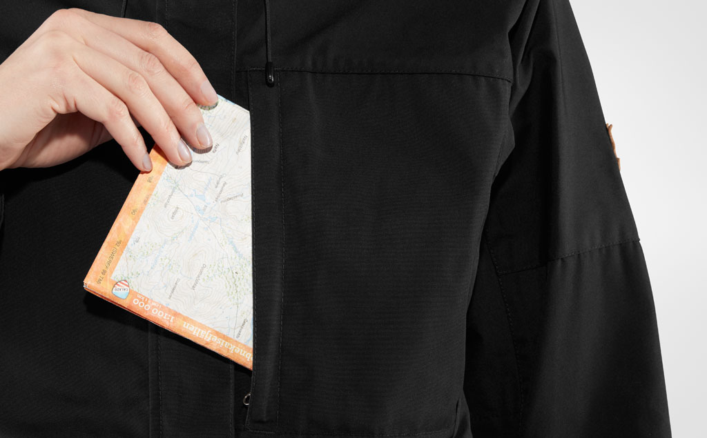 Kaipak Jacket er utviklet for å fungere like bra på stien som til hverdagsbruk. Fjällrävens slitesterke G-1000 Eco motstår vind og lette regnbyer, og stretchpaneler under ermene gir deg utmerket bevegelsesfrihet. Jakken ventilerer også ut fuktighet effektivt, noe som gir deg en tørrere opplevelse på intense turer. Tre glidelåslommer og én innerlomme – perfekt for ting du må ha lett tilgjengelig.