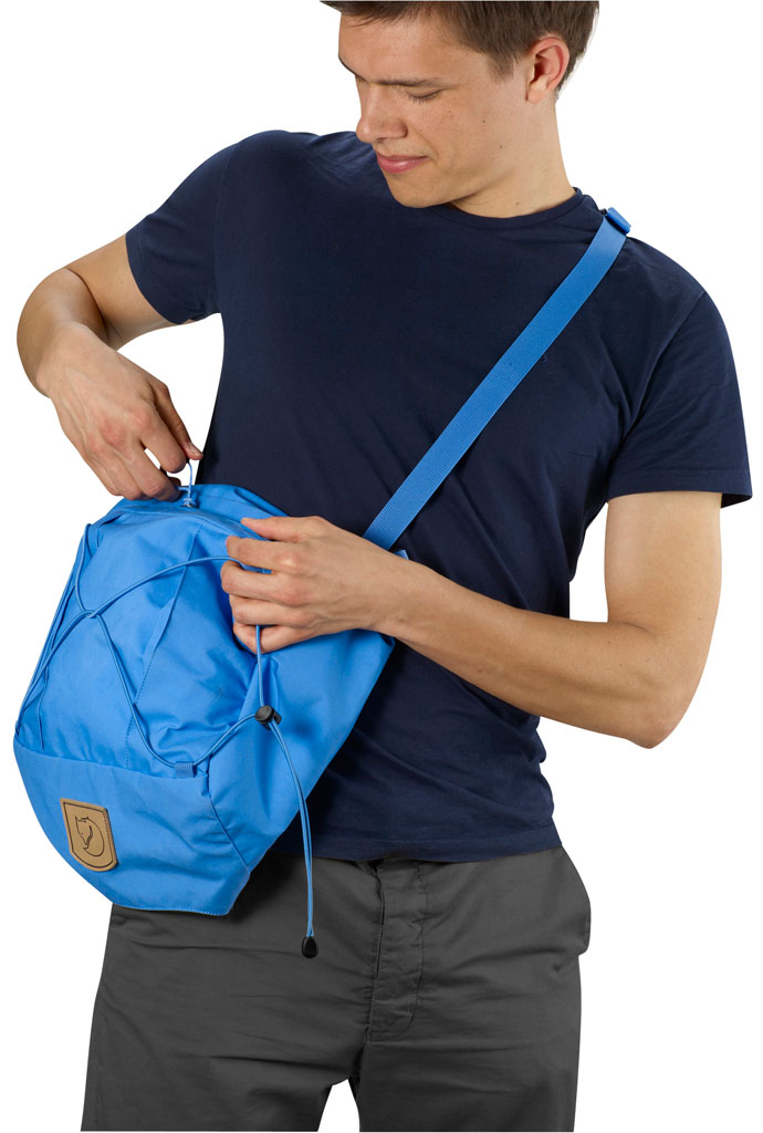 Topplokket kan tas av og brukes som midje- eller brystveske når du vil holde spesielt godt på verdisakene. To kompresjonsremmer på hver side som festes til smale staver gir jevn og effektiv kompresjon uten å sperre for åpningene på sidelommene. Festemuligheter på topplokket og på undersiden av ryggsekken. Fløyte på brystremmen og regntrekk med reflekstrykk.
