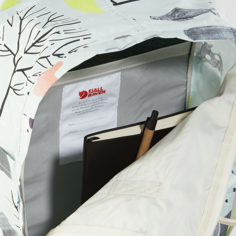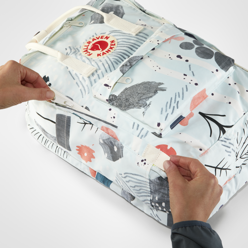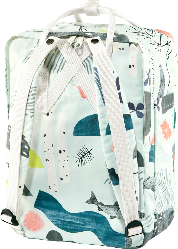 Kånken Art er resultatet når man inviterer kunstnere til å uttrykke sitt forhold til naturen ved bruk av den klassiske ryggsekken som lerret. Denne spesialversjonen har et unikt grafisk trykk, og i tillegg til det romslige hovedrommet, har den også en polstret laptop-lomme. Skulderstroppene er polstret, og ryggsekken er utstyrt med et avtakbart sitteunderlag, en frontlomme og sidelommer. En del av Fjällrävens Arctic Fox-initiativ, hvor deler av salget går til miljø- og klimaprosjekter. Passer til en 15-tommers bærbar datamaskin, maks. mål 36 x 26 x 3 cm.