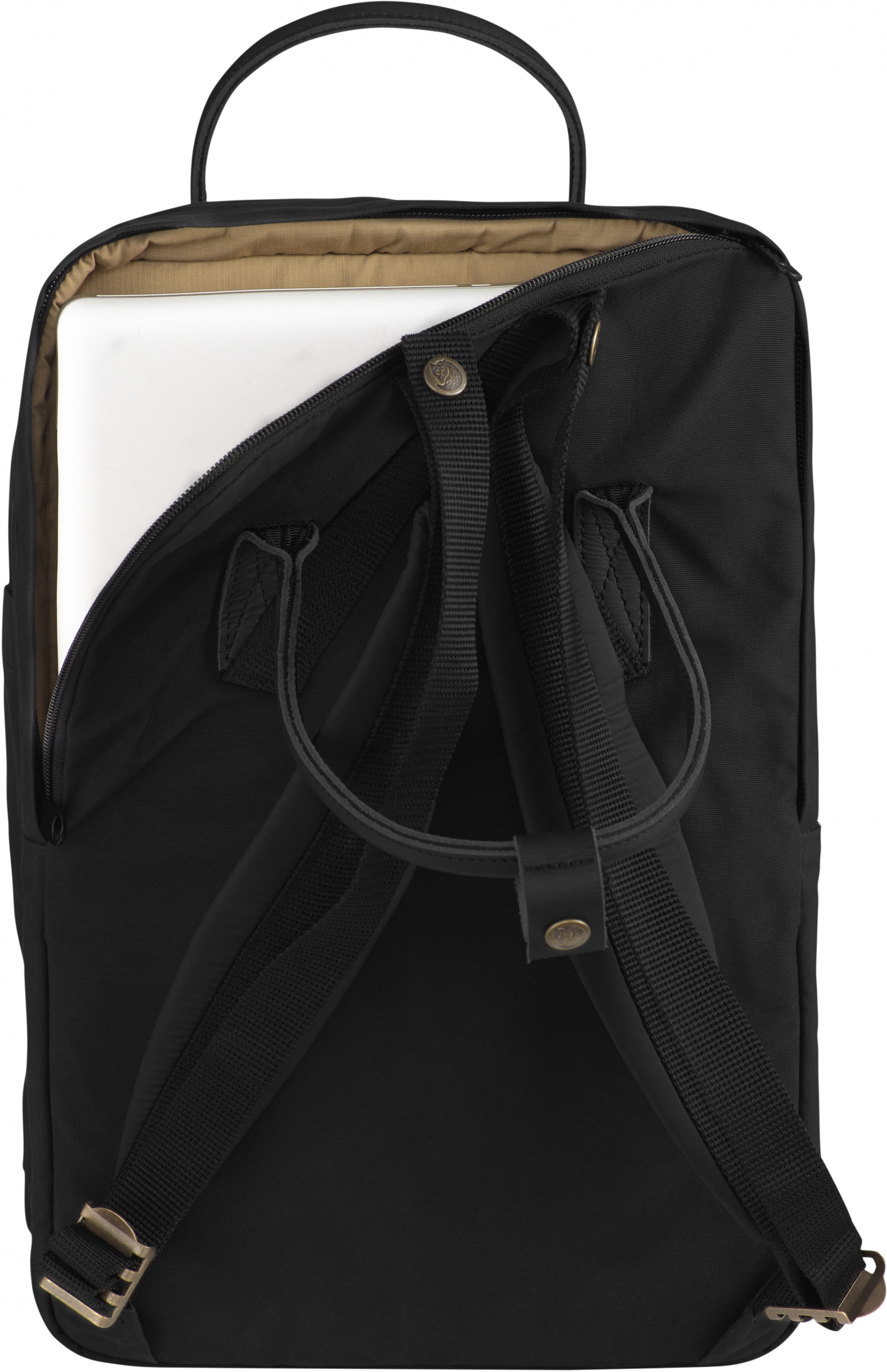 Svart på svart men likevel en fargerik personlighet – Kånken No. 2 Laptop Black er en ensfarget versjon av Kånken No. 2 med polstret lomme til en datamaskin.