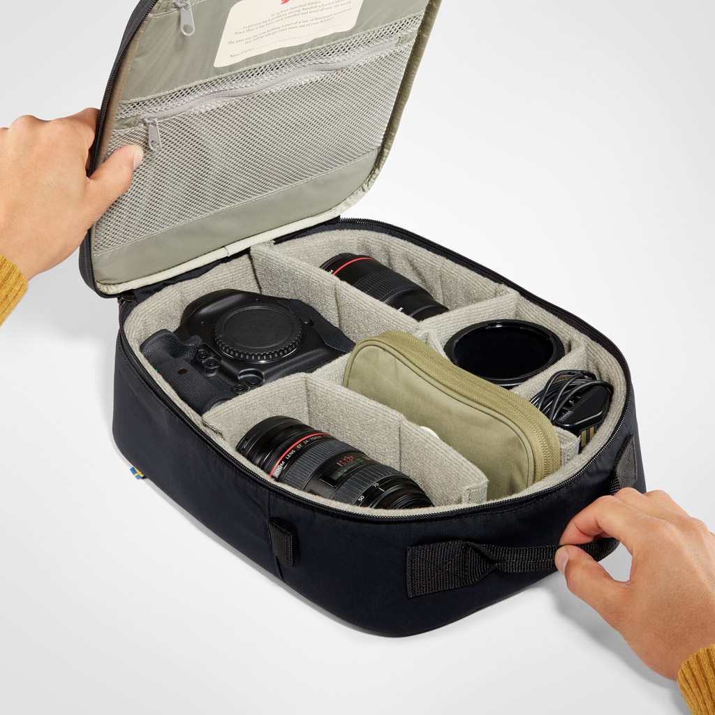 Gjør om din Kånken til en kameraveske med dette smarte kamerainnlegget. Fleksibel innvendig design med flyttbare seksjoner for kamerahus, ekstra linser og annet. Kan også brukes separat. Innlegget er en del av Kånken Essentials, en serie med praktisk utstyr for friluftsliv, reise og hverdag.
