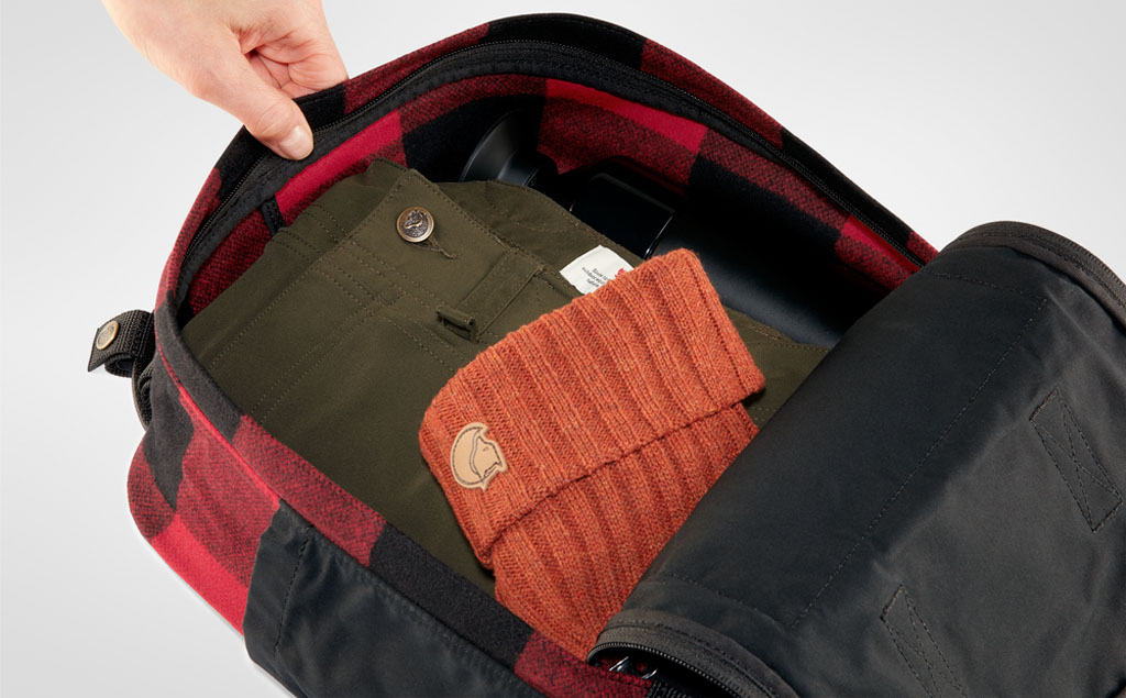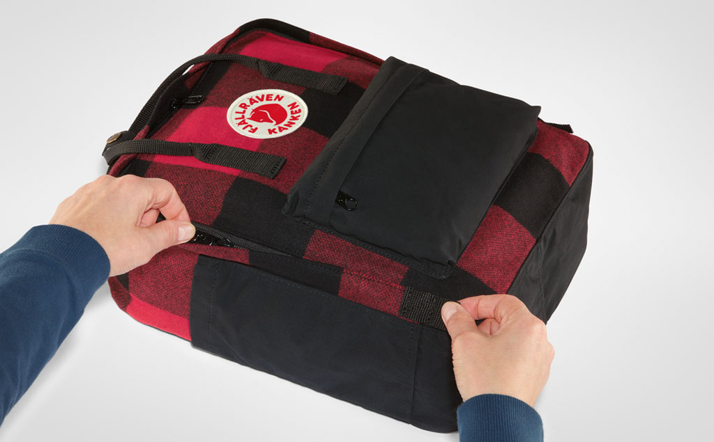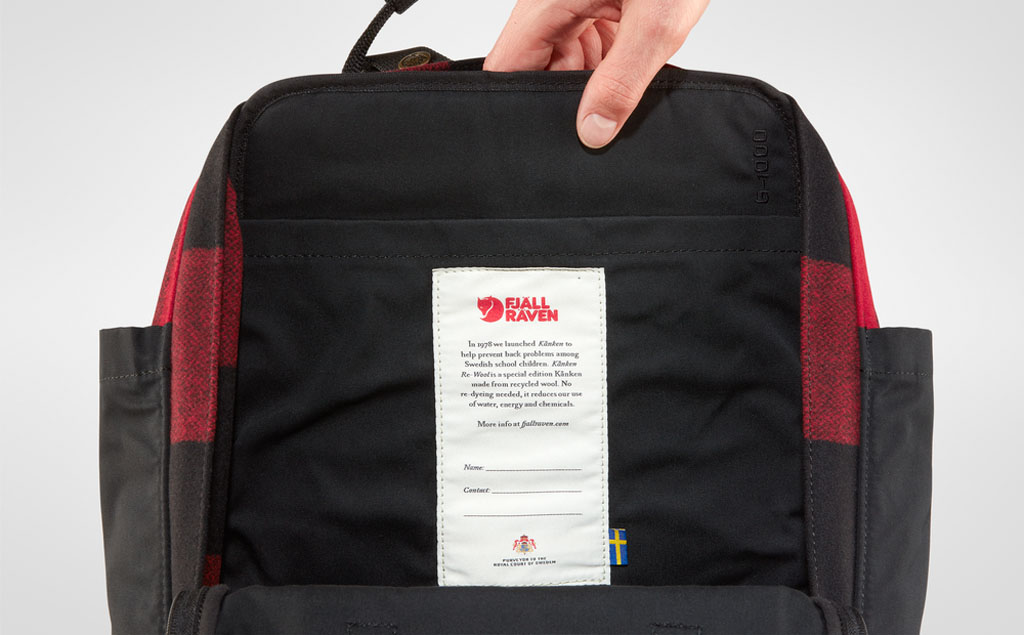 Kånken Re-Wool er en spesialutgave av en klassisk Kånken-ryggsekk, og er laget av resirkulert ull. Ved hjelp av tradisjonelle metoder forvandles ullindustriens rester til melton av høy kvalitet. Panelet i ryggen, basen, lommene og fôret er alle i G-1000 HeavyDuty Eco S, det gjelder også sitteunderlaget som oppbevares i hovedrommet.