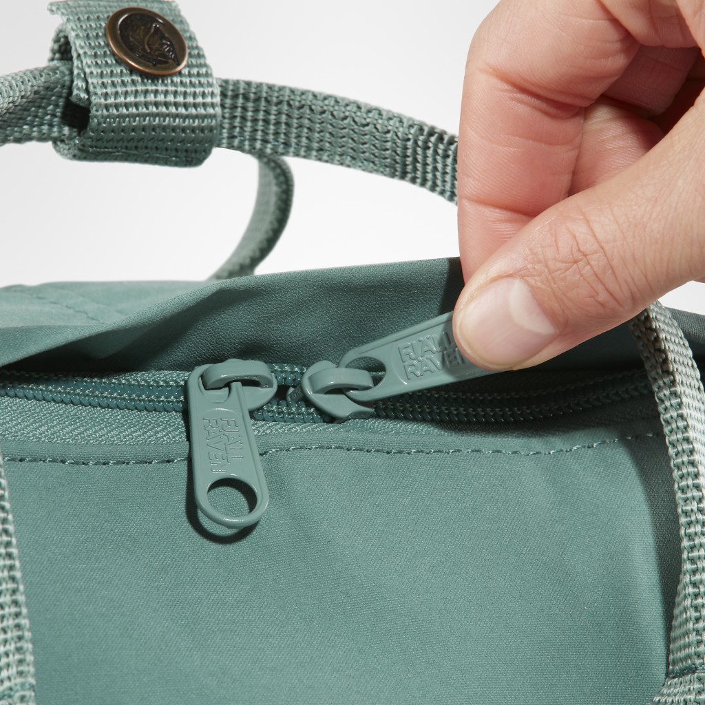 NB! Skyll Kånken-sekken før bruk for å hindre at overskuddsfarge smitter over på plagg. Skyll sekken med lunkent vann, i en balje. Evt. overskuddsfarge vil da fjernes. Om du er usikker på resultat, legg sekken i lunkent vann etter skylling. Kommer det ikke farge på vannet så er overskuddsfargen borte og sekken er klar til bruk.