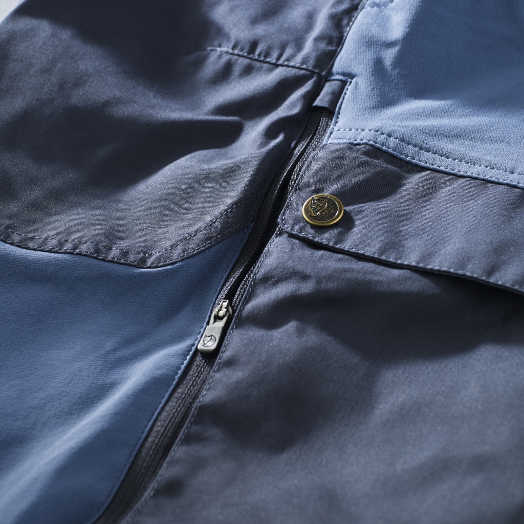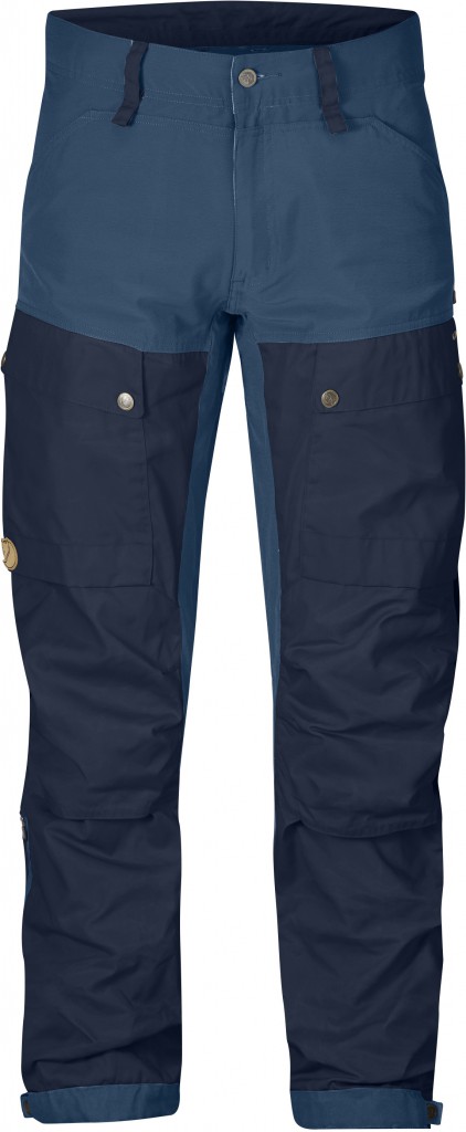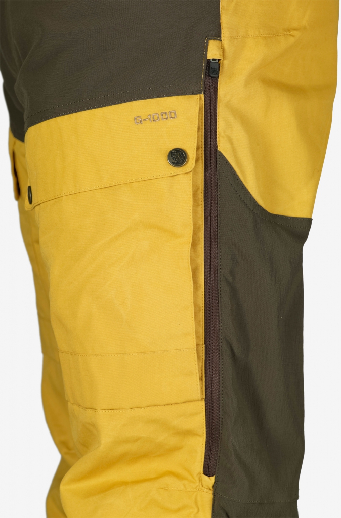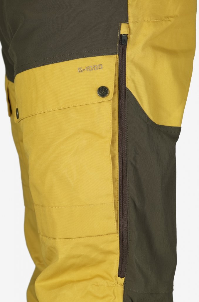 Og derfor har buksen slitesterkt G-1000 Eco på baken foran på bena over knærne og nederst på innsiden av bena der den dessuten er forsterket med dobbelt stoff for å tåle slitasje fra fjellstøvler.