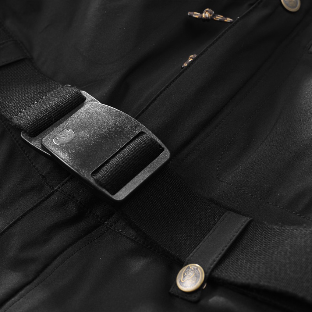 Snittet er omhyggelig gjennomarbeidet og buksen er romslig nok for et isolerende lag under og for maksimal bevegelsesfrihet. Den høye midjen har et elastisk felt bak som varmer kjernen og hindrer snøen i å trenge inn. Selene er plassert slik at bakdelen kan åpnes for problemfrie toalettbesøk. Den lange vanntette toveis glidelåsen i sidene slipper ut overflødig varme og gjør det enklere å ta buksen på og av. Det er unødvendig å ta av seg støvlene eller skiene.