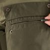 - Glidelåsene over kneet forvandler buksens nedre del til gamasjer.