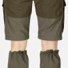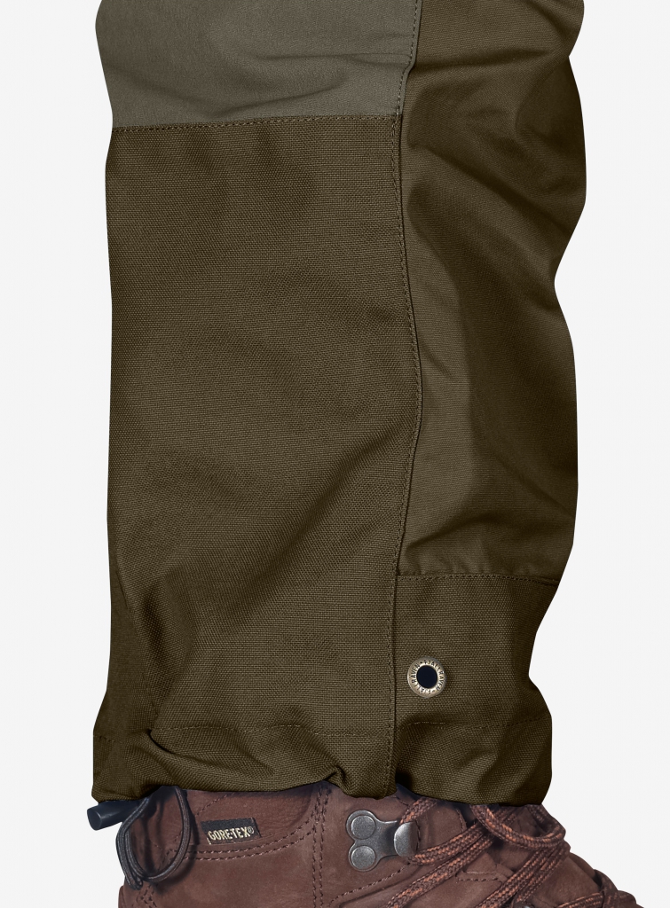 Delen som tas av har snorjustering ved leggen som sammen med støvelkroken på benavslutningen beskytter leggene i terreng med mye busk og kratt.