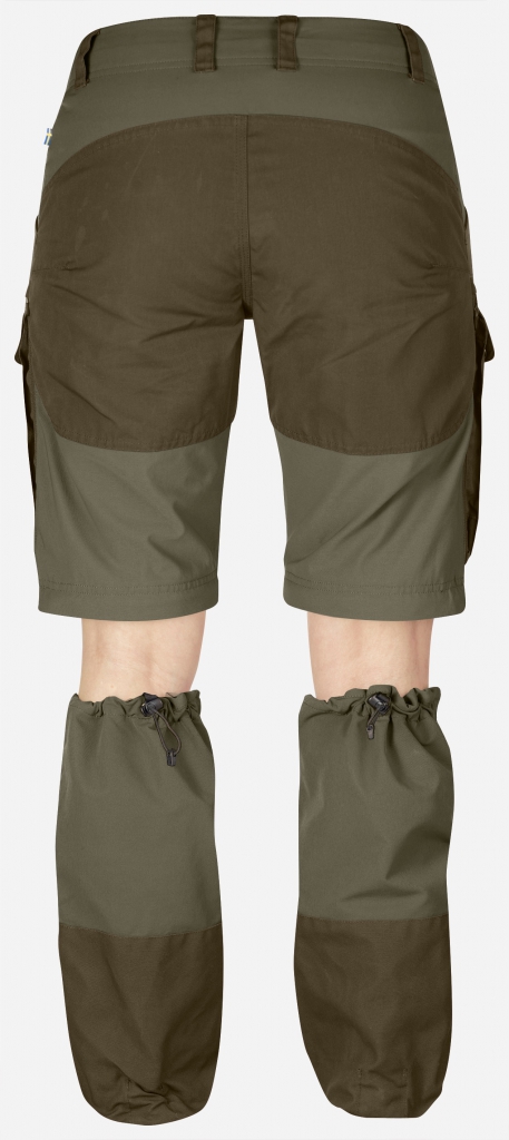 I varmt vær kan den nederste delen av bena tas av for å gjøre om buksen til en shorts akkurat som på vanlige bukser med avtakbare ben.