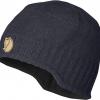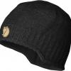 Strikket lue i ullblanding med vindtett Stormblocker-fleecefôr. Hjelmfasong som varmer ørene og nakken.