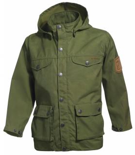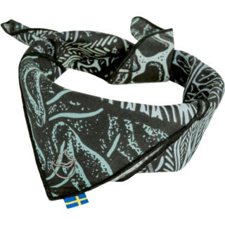 Rund halsringning og trykt tegning av fjellrever på brystet.