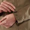 - Mansjetter med knapp og snøring ved falden.
