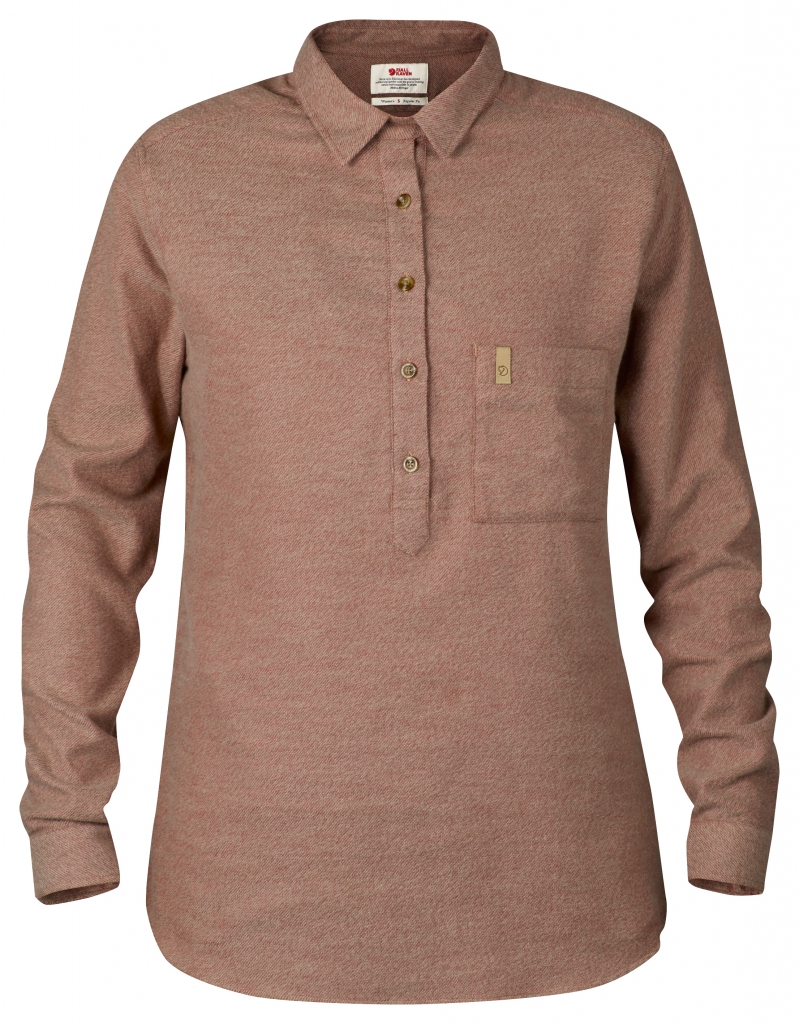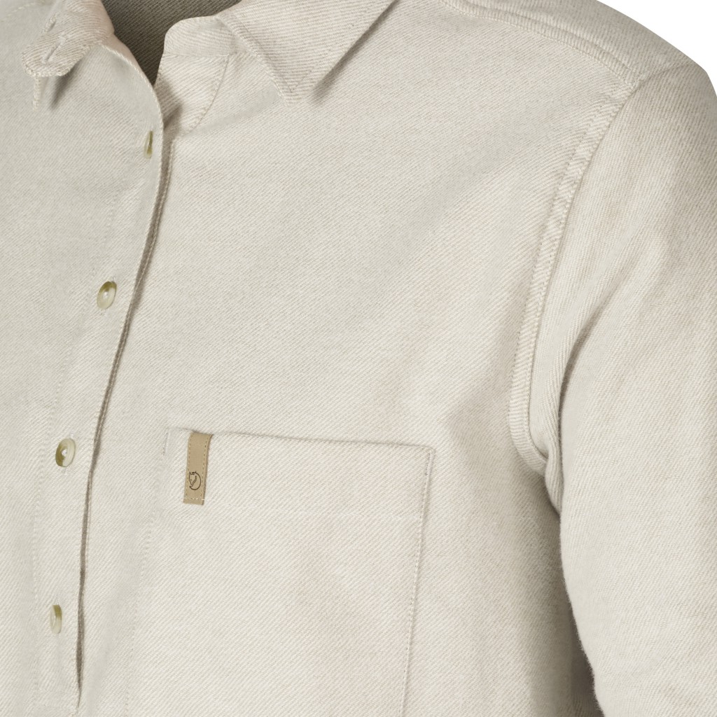 Langermet skjorte med normal passform i lett bomullsflanell som føles myk mot huden. Stoffet er vevd med to tråder i forskjellige farger noe som skaper et fint fargespill. Et uformelt plagg som passer like godt til hverdagsbruk i byen som til helger på hytta.Halv åpning i front med knapping der den øverste knappen er skjult under kragen. Én åpen brystlomme med belg og en liten brettet logo i skinn i øverste kant.