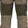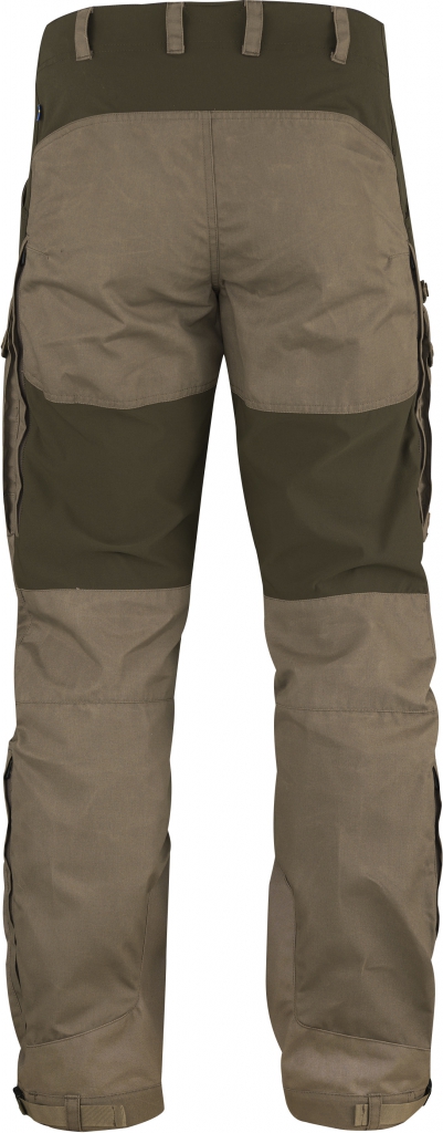 Slitesterkt stoff i baken, samt ekstra slitesterk stoff rundt legger og knær der belastningen er størst i busker og kratt.