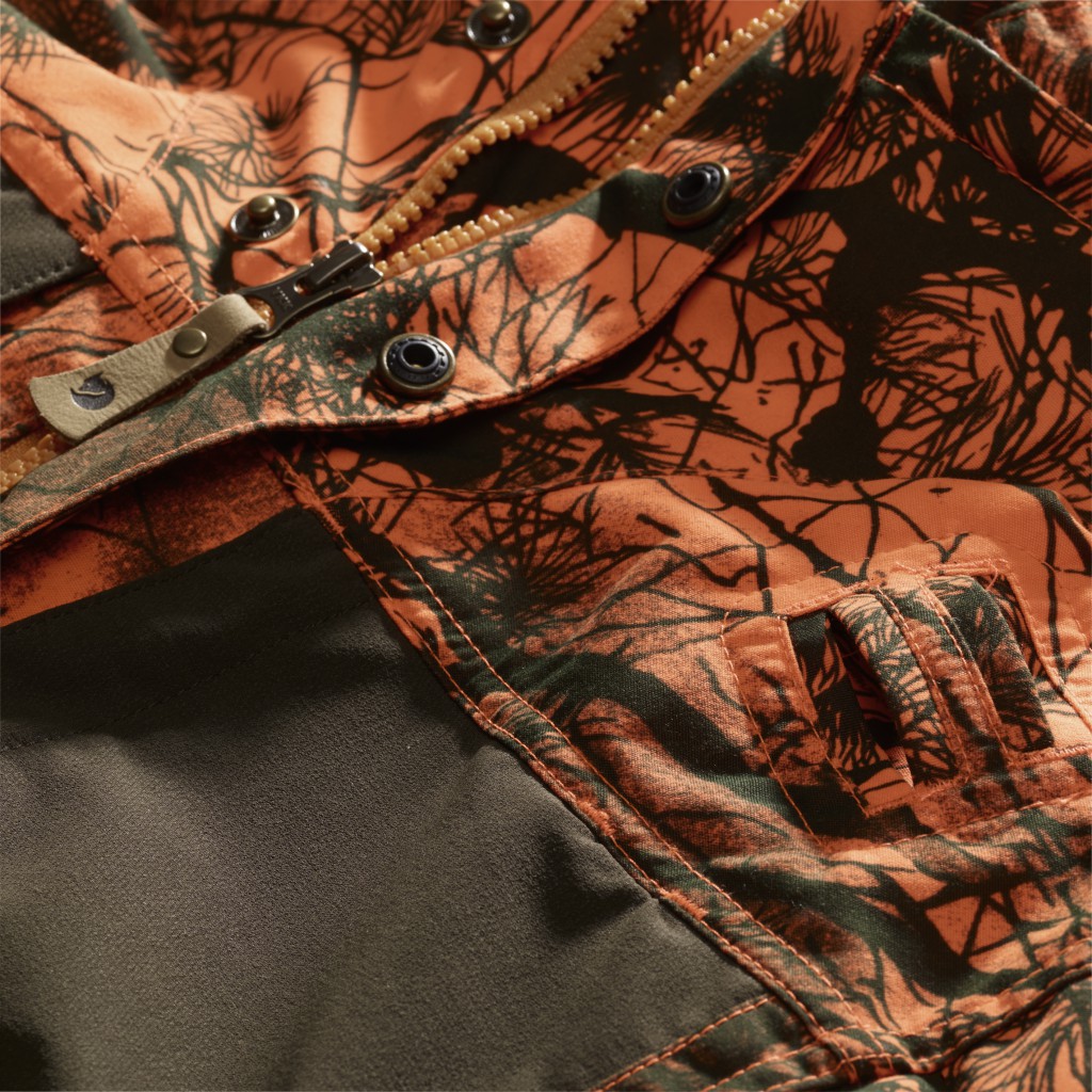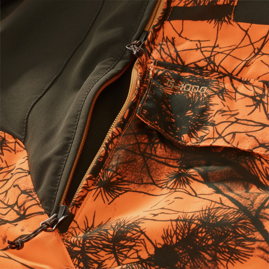 En rekke omhyggelig gjennomtenkte funksjoner gjør det enklere for deg å konsentrere deg om jakten og omgivelsene. Ett eksempel er den lett tilgjengelige ermelommen med ammunisjonsholdere på venstre erme og festet for kommunikasjonsradio på venstre skulder. Ekstra ammunisjon kan oppbevares i et par store flate lommer med klaffer nederst på fronten. Det er også to romslige vertikale brystlommer begge med glidelås og den ene med en innvendig nettinglomme med plass til en radio eller mobiltelefon.