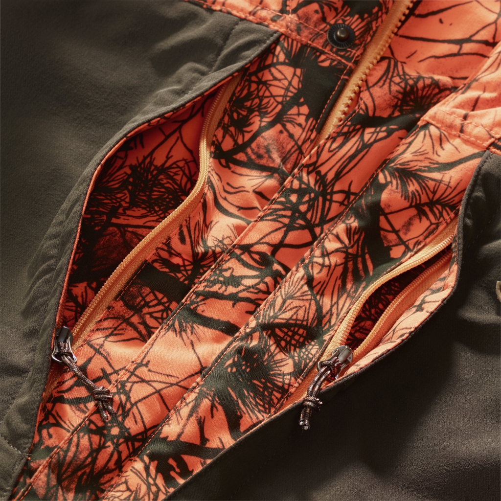 Det er også en praktisk lomme på ryggen og to store brystlommer med glidelås der den ene har en innvendig nettinglomme med plass til en radio eller mobiltelefon.
