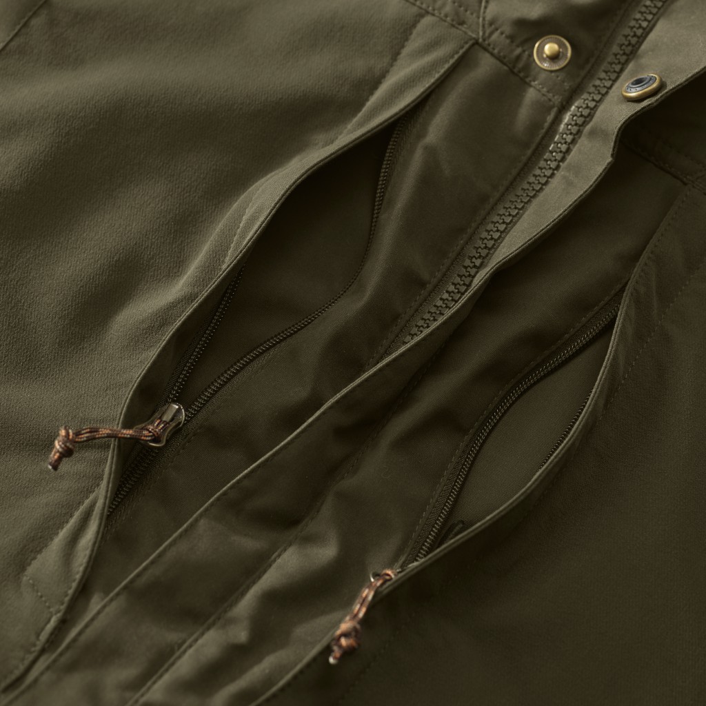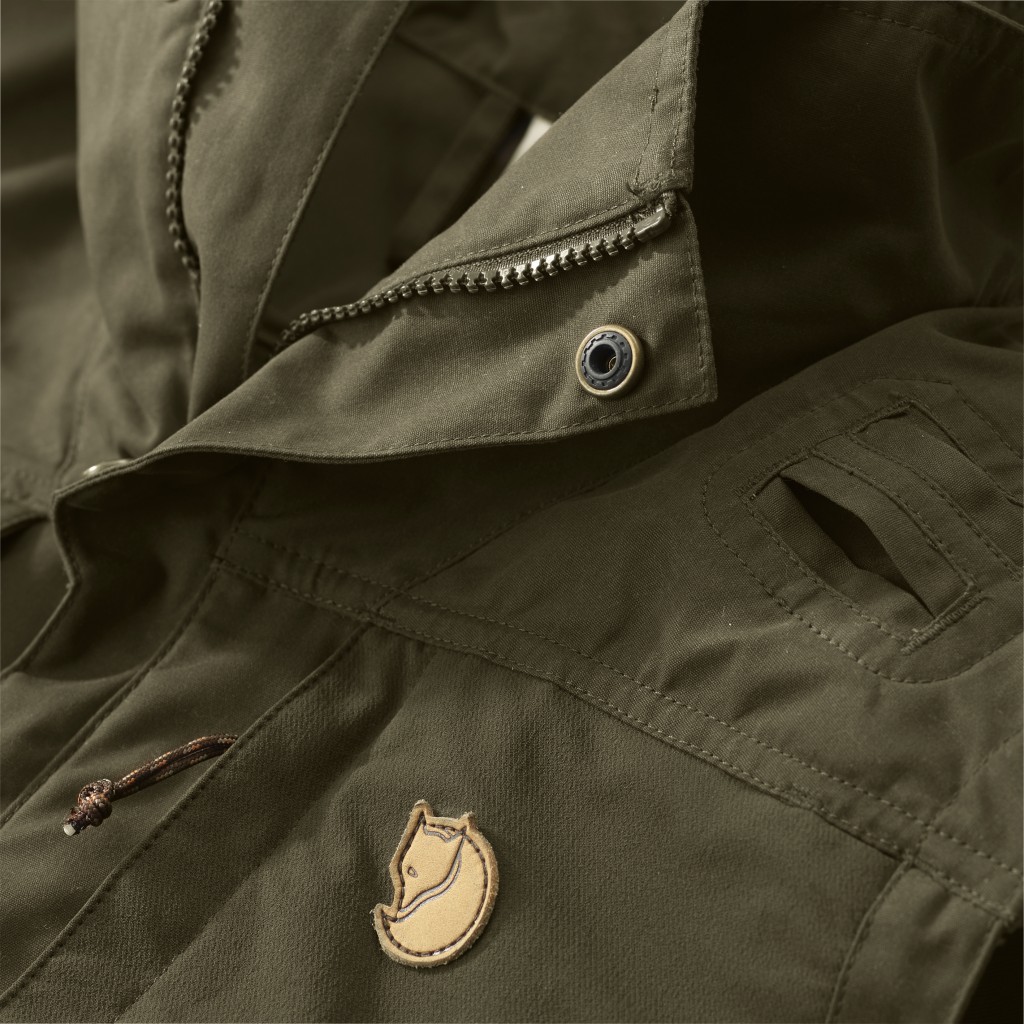 Vestens DNA er hentet fra den prisbelønte Keb-serien og primærstoffet er værbestandig G-1000 Silent Eco (gjenvunnet polyester og økologisk bomull) i tillegg til elastisk stoff øverst på ryggen og på lommene.