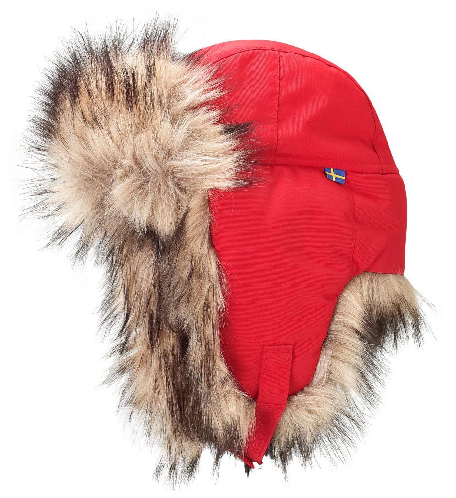 Varm Fjellraven vinterlue for barn med pusete fuskepels