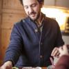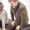 Behagelig strikkejakke med høy hals i varm rettstrikket lammeull. Corozo-knapper G-1000-stoff på skuldre og albuer og to lommer.