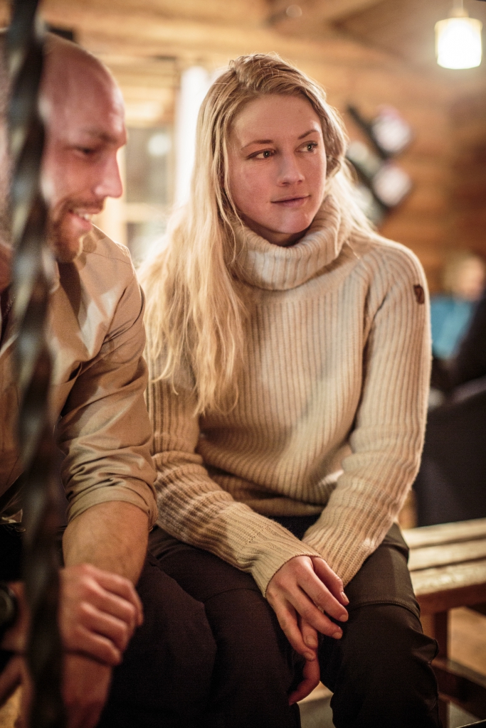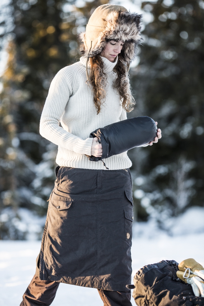 Den nedre falden er også ribbestrikket akkurat som polohalsen som kan rulles opp for ekstra varme når det er vind.