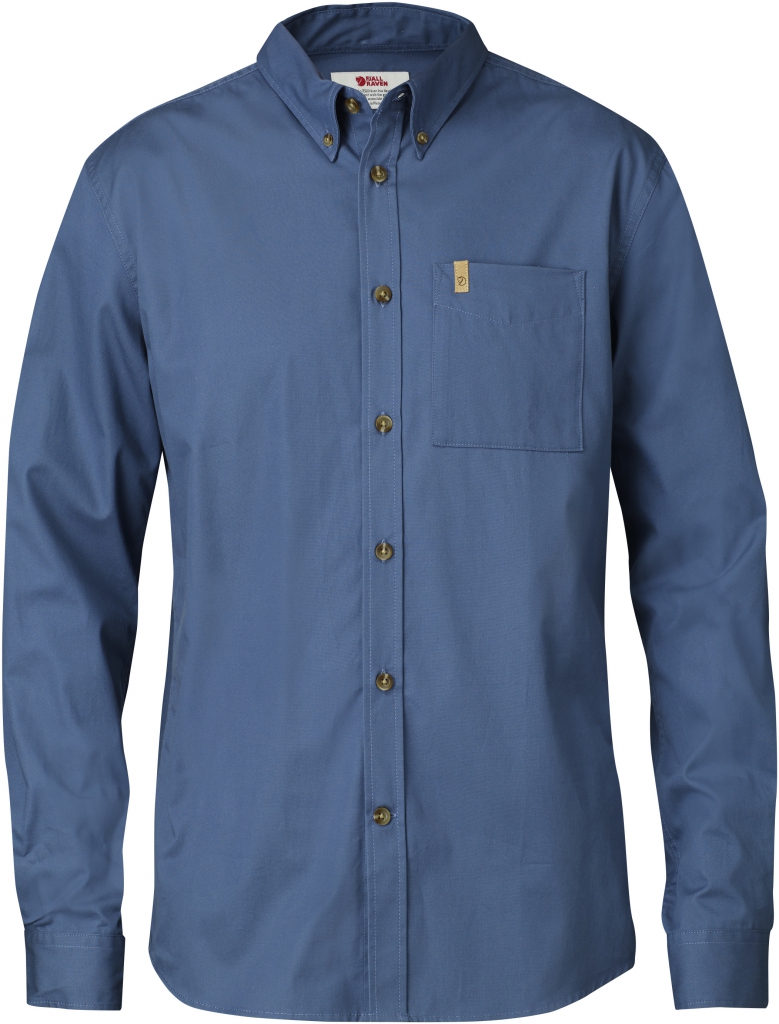 Tidløs langermet skjorte i ensfarget bomullstvill.